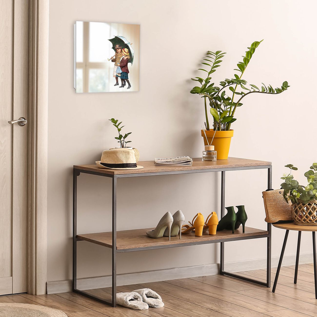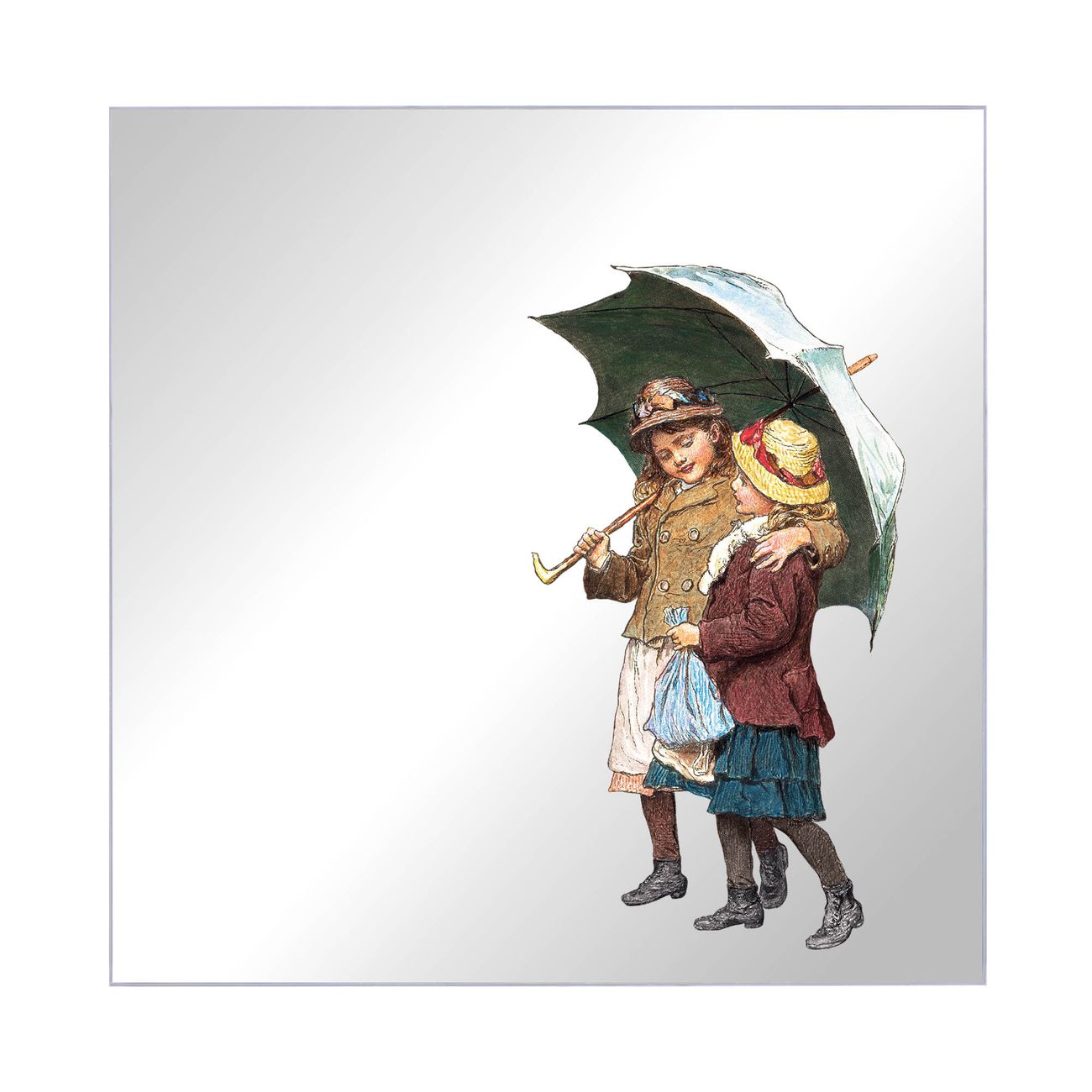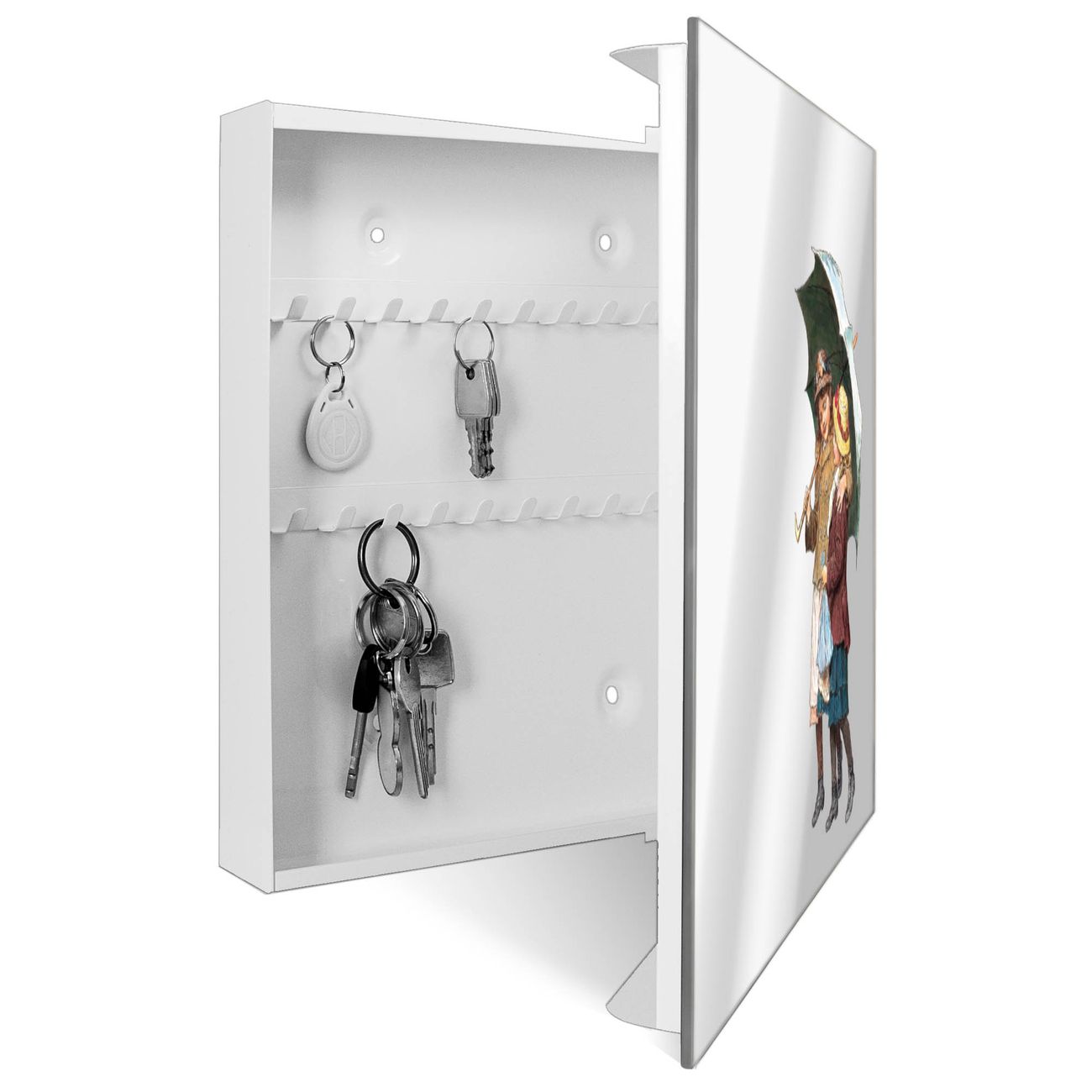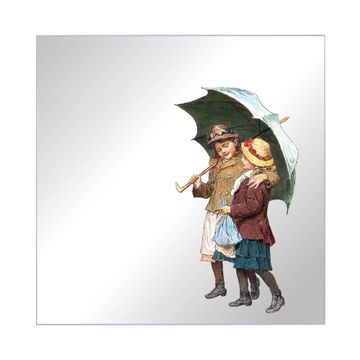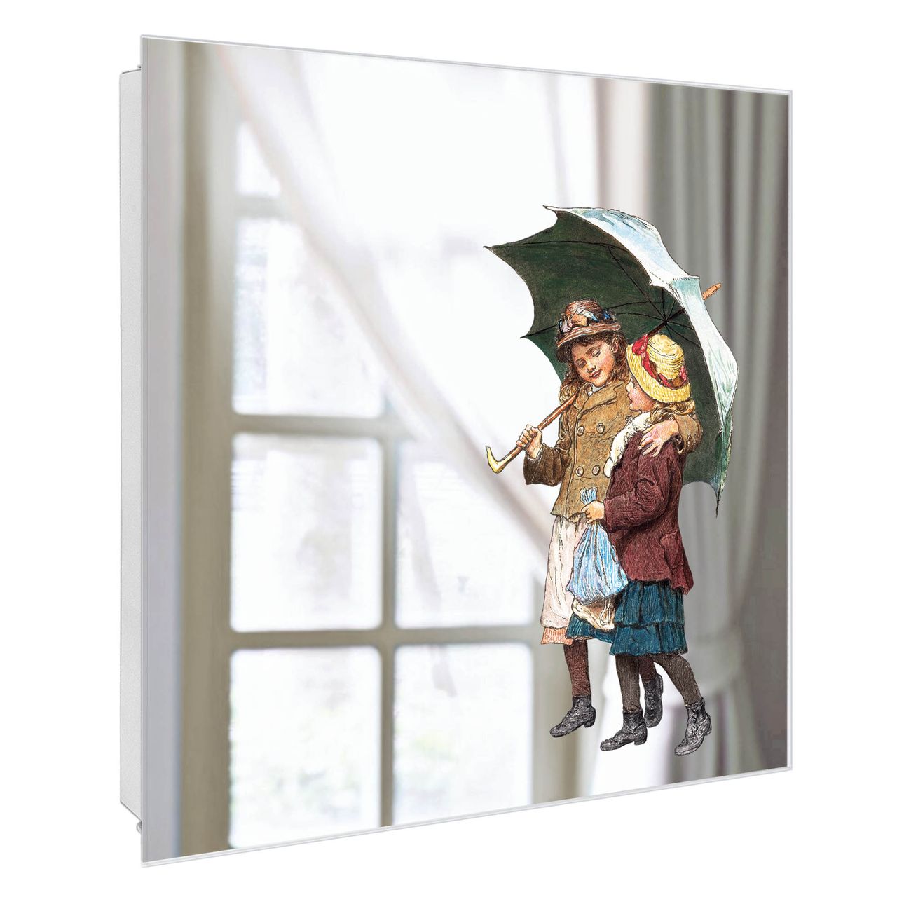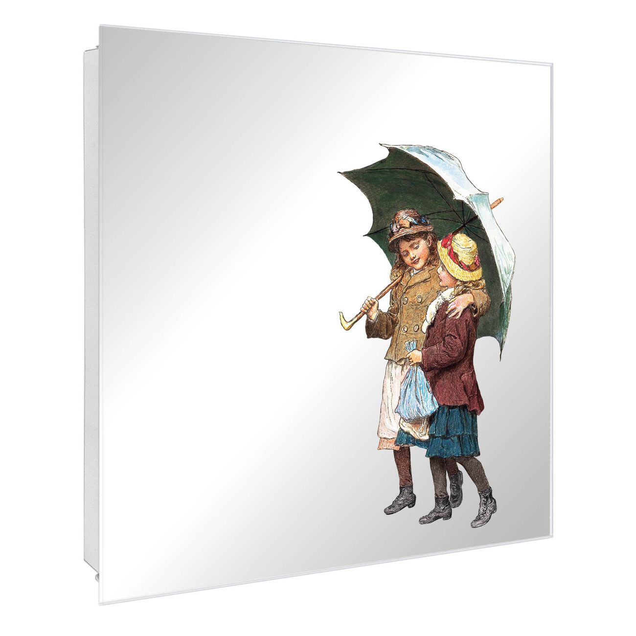 Spiegel Schlüsselkasten - Design Schlüsselbox Motiv zwei Kinder mit Regenschirm Vintage