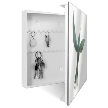 Bringe Ordnung und Stil in deinen Eingangsbereich mit dem banjado Schlüsselkasten mit Spiegel. Die elegante Spiegelfront kombiniert Funktionalität mit modernem Design und macht die Schlüsselaufbewahrung zu einem dekorativen Highlight. ✅ Spiegel Schlüsselaufbewahrung mit Motiv Motiv Kolibri 4 Der Design-Schlüsselkasten Motiv Motiv Kolibri 4 bietet Platz für bis zu 50 Schlüssel, die auf 5 stabilen Reihen mit je 10 Haken übersichtlich verstaut werden. Mit seinen kompakten Maßen von 30 x 30 x 5 cm passt die Schlüsselbox perfekt auch in kleinere Räume. Der weiß lackierte Stahlkorpus mit rechts angeschlagenem Türscharnier harmoniert mit der Spiegelfront und fügt sich nahtlos in jedes Wohnambiente ein. Ob als Schlüsselorganizer für Zuhause oder als praktische Lösung für Büros, Praxen und Gewerbe, der banjado Schlüsselkasten sorgt für Ordnung und Übersicht. Die Spiegelfront verleiht dem Eingangsbereich zusätzliche Funktionalität und lässt Räume optisch größer wirken. Die Schlüsselbox Motiv Motiv Kolibri 4 zur Wandmontage wird inklusive Befestigungsmaterial geliefert und ist schnell angebracht. So hast du deine Schlüssel jederzeit griffbereit und zugleich stilvoll verstaut. Mit diesem banjado Schlüsselkasten Motiv Motiv Kolibri 4 kombinierst du praktische Aufbewahrung mit stilvollem Wohndesign. Ob privat oder geschäftlich, die Schlüsselbox sorgt für mehr Ordnung, Übersicht und ein wohnliches Ambiente.Vorteile im Überblick