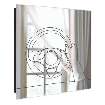 Spiegel Schlüsselkasten - Design Schlüsselbox Motiv Lineart Lenkrad