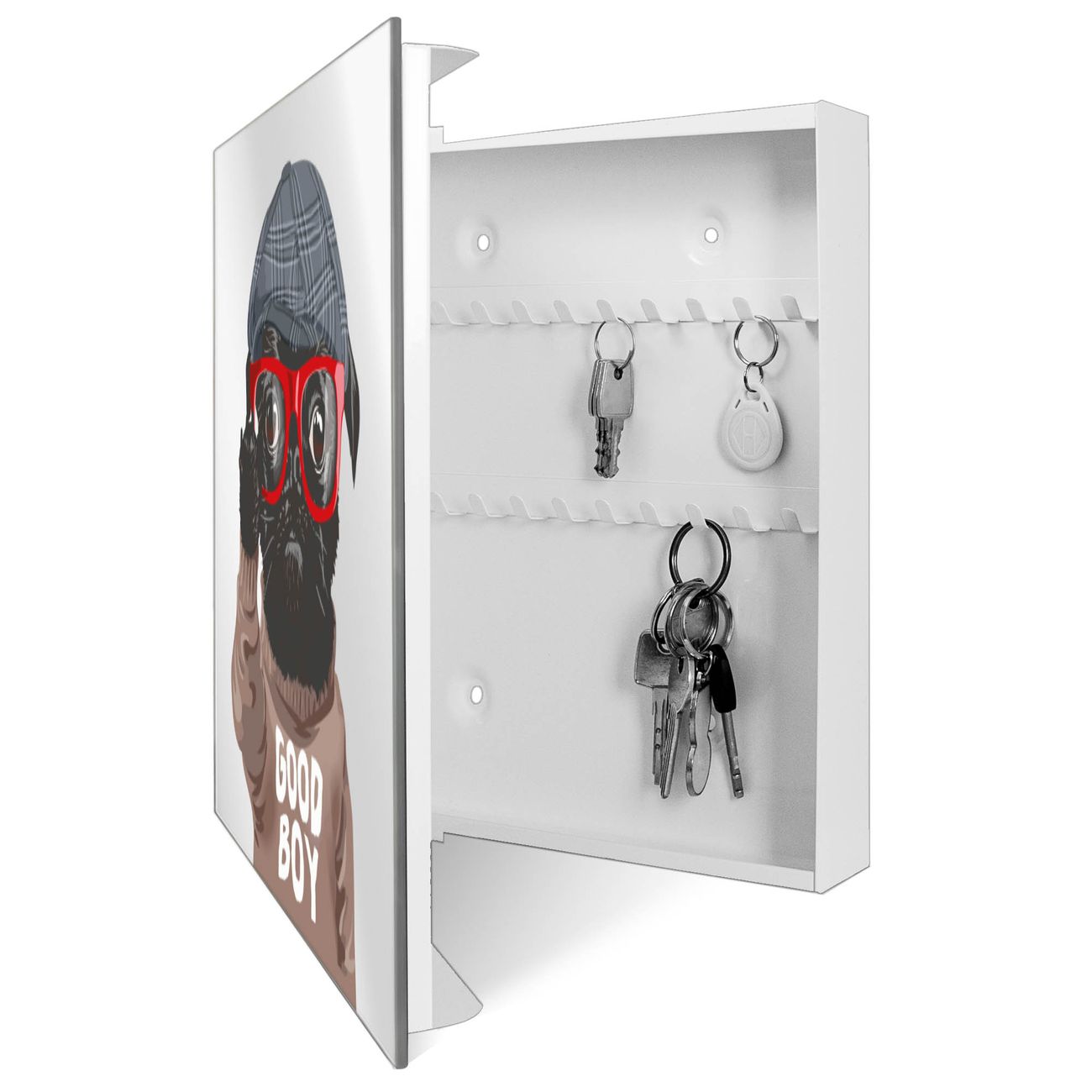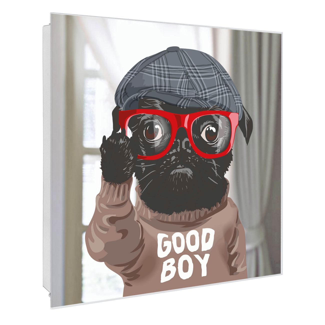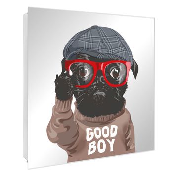 Spiegel Schlüsselkasten - Design Schlüsselbox Motiv Lustiger Mops mit Brille