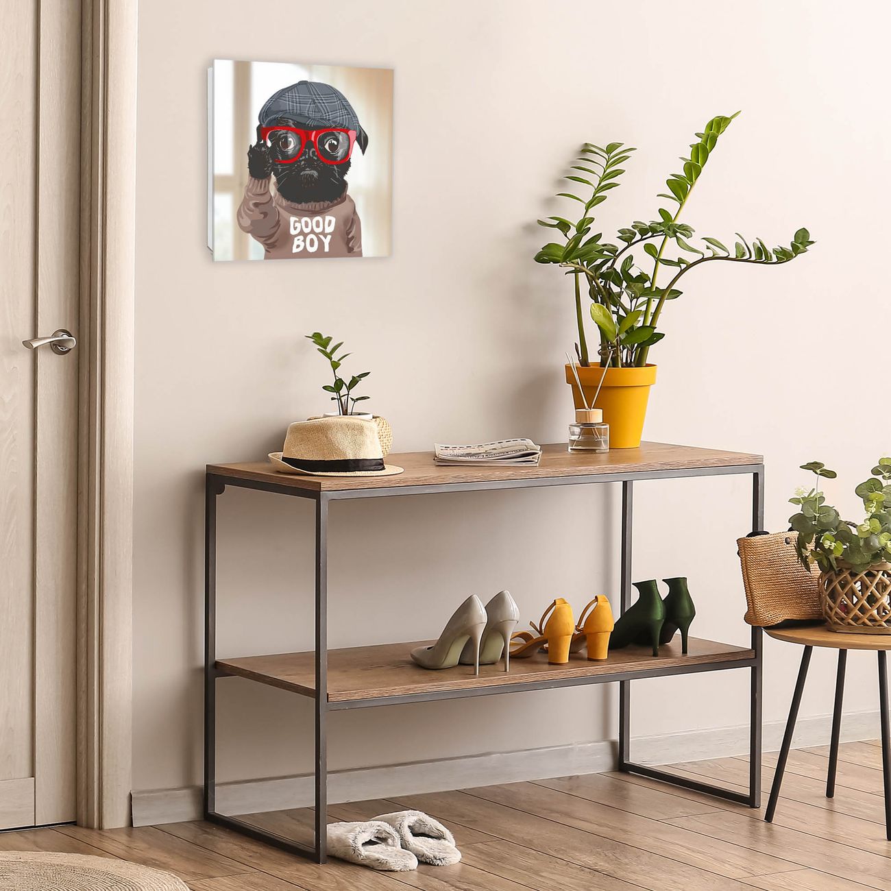 Bringe Ordnung und Stil in deinen Eingangsbereich mit dem banjado Schlüsselkasten mit Spiegel. Die elegante Spiegelfront kombiniert Funktionalität mit modernem Design und macht die Schlüsselaufbewahrung zu einem dekorativen Highlight. ✅ Spiegel Schlüsselaufbewahrung mit Motiv Motiv Lustiger Mops mit Brille Der Design-Schlüsselkasten Motiv Motiv Lustiger Mops mit Brille bietet Platz für bis zu 50 Schlüssel, die auf 5 stabilen Reihen mit je 10 Haken übersichtlich verstaut werden. Mit seinen kompakten Maßen von 30 x 30 x 5 cm passt die Schlüsselbox perfekt auch in kleinere Räume. Der weiß lackierte Stahlkorpus mit rechts angeschlagenem Türscharnier harmoniert mit der Spiegelfront und fügt sich nahtlos in jedes Wohnambiente ein. Ob als Schlüsselorganizer für Zuhause oder als praktische Lösung für Büros, Praxen und Gewerbe, der banjado Schlüsselkasten sorgt für Ordnung und Übersicht. Die Spiegelfront verleiht dem Eingangsbereich zusätzliche Funktionalität und lässt Räume optisch größer wirken. Die Schlüsselbox Motiv Motiv Lustiger Mops mit Brille zur Wandmontage wird inklusive Befestigungsmaterial geliefert und ist schnell angebracht. So hast du deine Schlüssel jederzeit griffbereit und zugleich stilvoll verstaut. Mit diesem banjado Schlüsselkasten Motiv Motiv Lustiger Mops mit Brille kombinierst du praktische Aufbewahrung mit stilvollem Wohndesign. Ob privat oder geschäftlich, die Schlüsselbox sorgt für mehr Ordnung, Übersicht und ein wohnliches Ambiente.Vorteile im Überblick