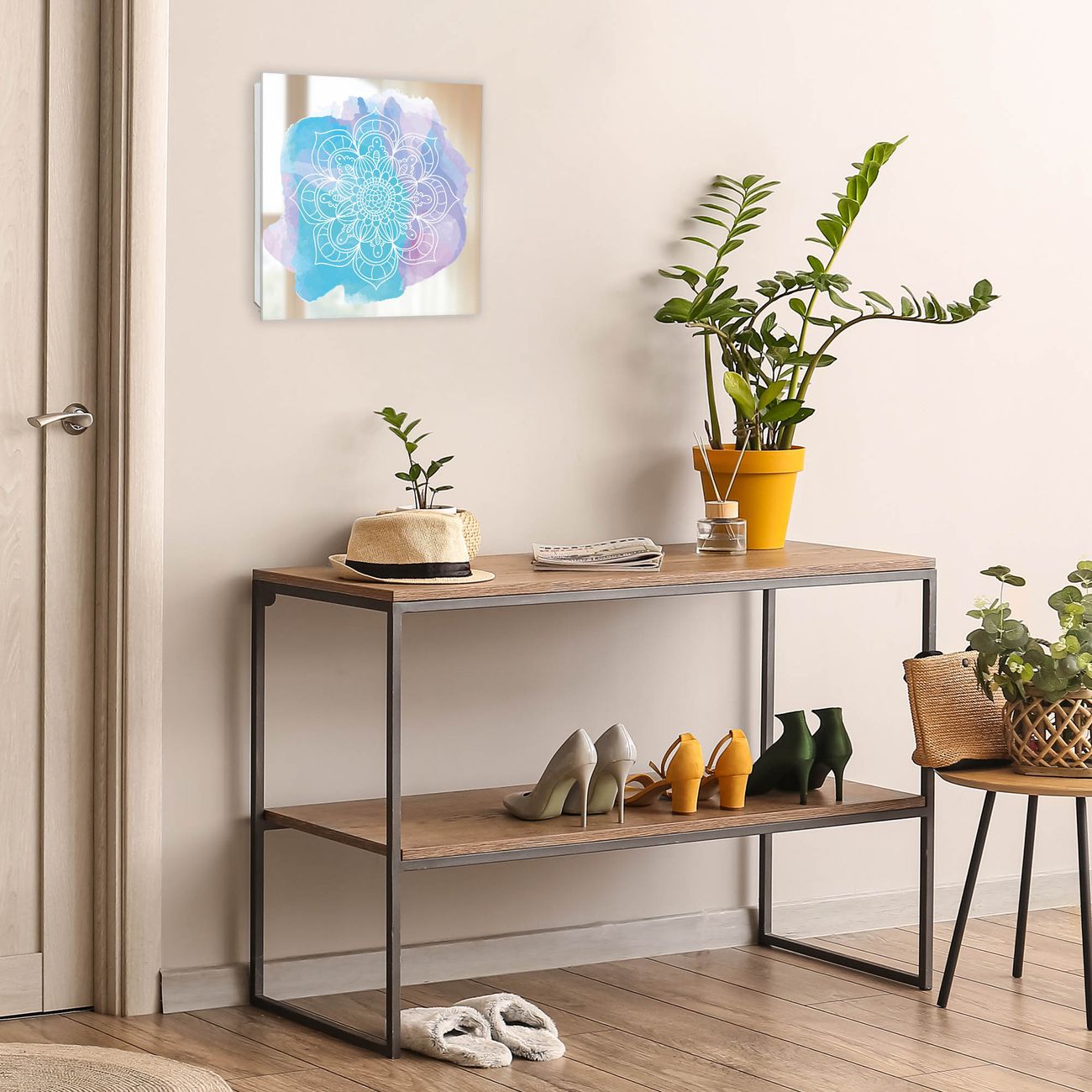 Bringe Ordnung und Stil in deinen Eingangsbereich mit dem banjado Schlüsselkasten mit Spiegel. Die elegante Spiegelfront kombiniert Funktionalität mit modernem Design und macht die Schlüsselaufbewahrung zu einem dekorativen Highlight. ✅ Spiegel Schlüsselaufbewahrung mit Motiv Motiv Mandala Tranquility Der Design-Schlüsselkasten Motiv Motiv Mandala Tranquility bietet Platz für bis zu 50 Schlüssel, die auf 5 stabilen Reihen mit je 10 Haken übersichtlich verstaut werden. Mit seinen kompakten Maßen von 30 x 30 x 5 cm passt die Schlüsselbox perfekt auch in kleinere Räume. Der weiß lackierte Stahlkorpus mit rechts angeschlagenem Türscharnier harmoniert mit der Spiegelfront und fügt sich nahtlos in jedes Wohnambiente ein. Ob als Schlüsselorganizer für Zuhause oder als praktische Lösung für Büros, Praxen und Gewerbe, der banjado Schlüsselkasten sorgt für Ordnung und Übersicht. Die Spiegelfront verleiht dem Eingangsbereich zusätzliche Funktionalität und lässt Räume optisch größer wirken. Die Schlüsselbox Motiv Motiv Mandala Tranquility zur Wandmontage wird inklusive Befestigungsmaterial geliefert und ist schnell angebracht. So hast du deine Schlüssel jederzeit griffbereit und zugleich stilvoll verstaut. Mit diesem banjado Schlüsselkasten Motiv Motiv Mandala Tranquility kombinierst du praktische Aufbewahrung mit stilvollem Wohndesign. Ob privat oder geschäftlich, die Schlüsselbox sorgt für mehr Ordnung, Übersicht und ein wohnliches Ambiente.Vorteile im Überblick