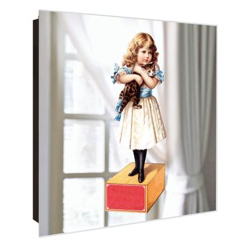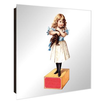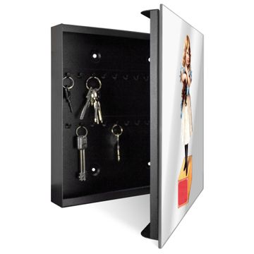 Spiegel Schlüsselkasten - Design Schlüsselbox Motiv Nostalgisches Mädchen mit Katze