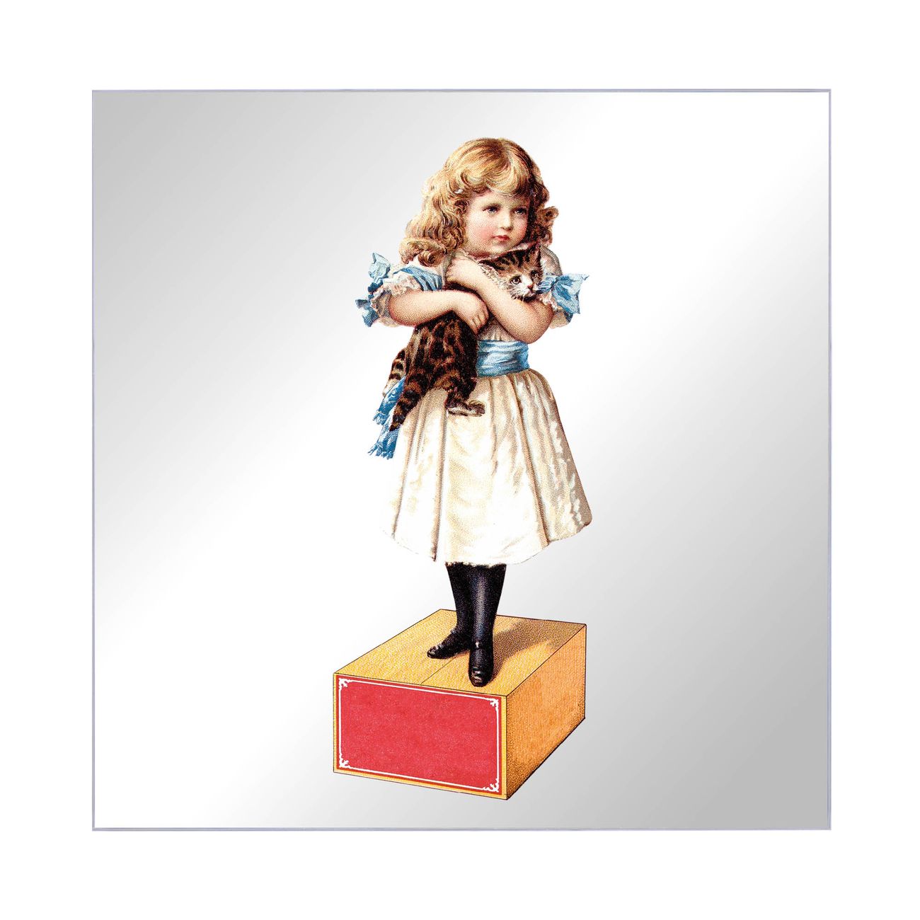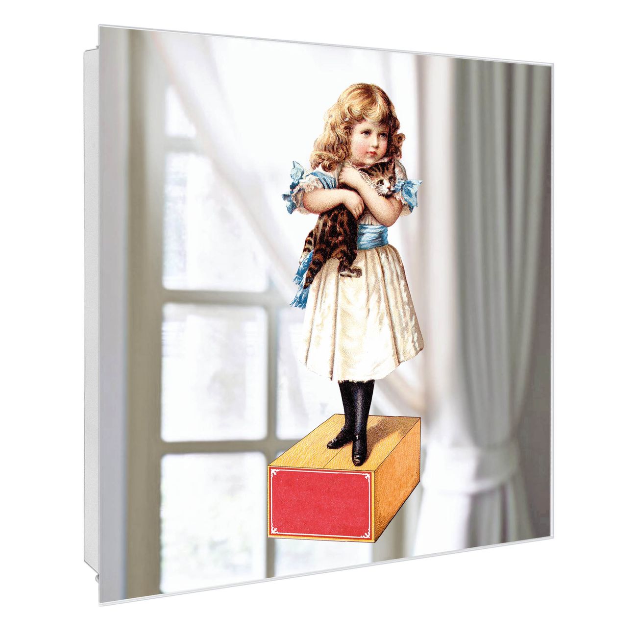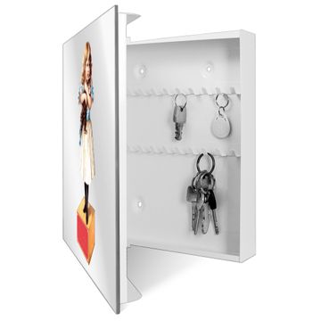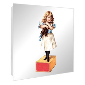 Spiegel Schlüsselkasten - Design Schlüsselbox Motiv Nostalgisches Mädchen mit Katze