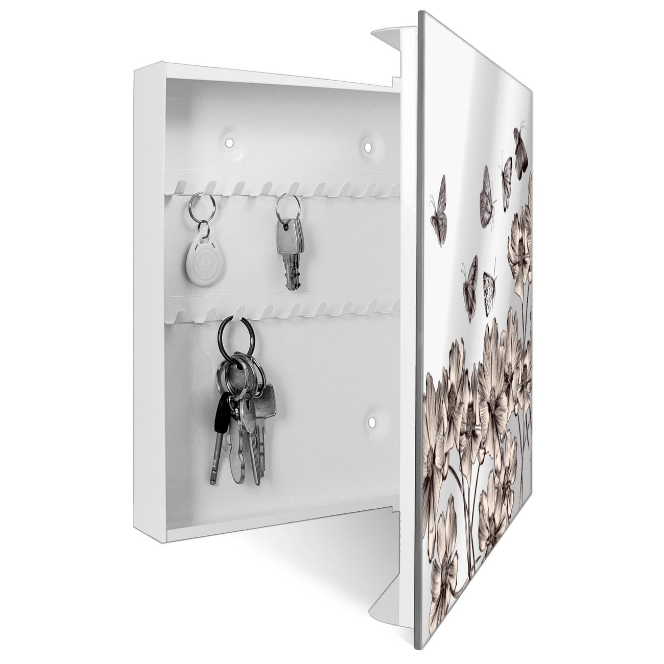 Spiegel Schlüsselkasten - Design Schlüsselbox Motiv Schmetterlingsgarten