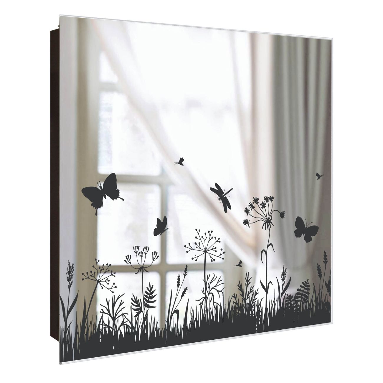 Spiegel Schlüsselkasten - Design Schlüsselbox Motiv Sommerwiese Silhouette