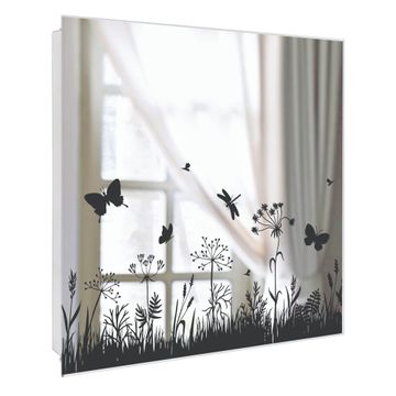 Spiegel Schlüsselkasten - Design Schlüsselbox Motiv Sommerwiese Silhouette