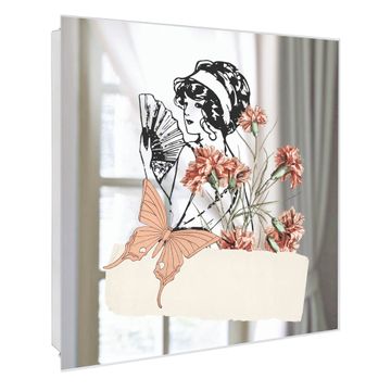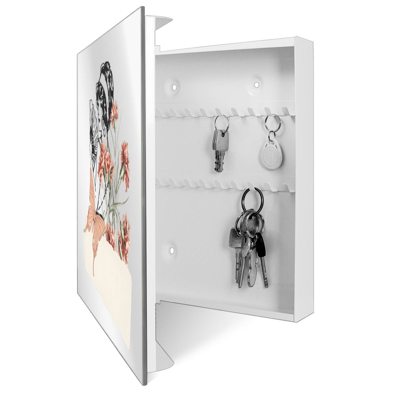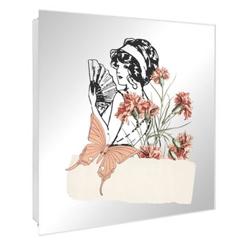 Spiegel Schlüsselkasten - Design Schlüsselbox Motiv Vintage Blumenfrau