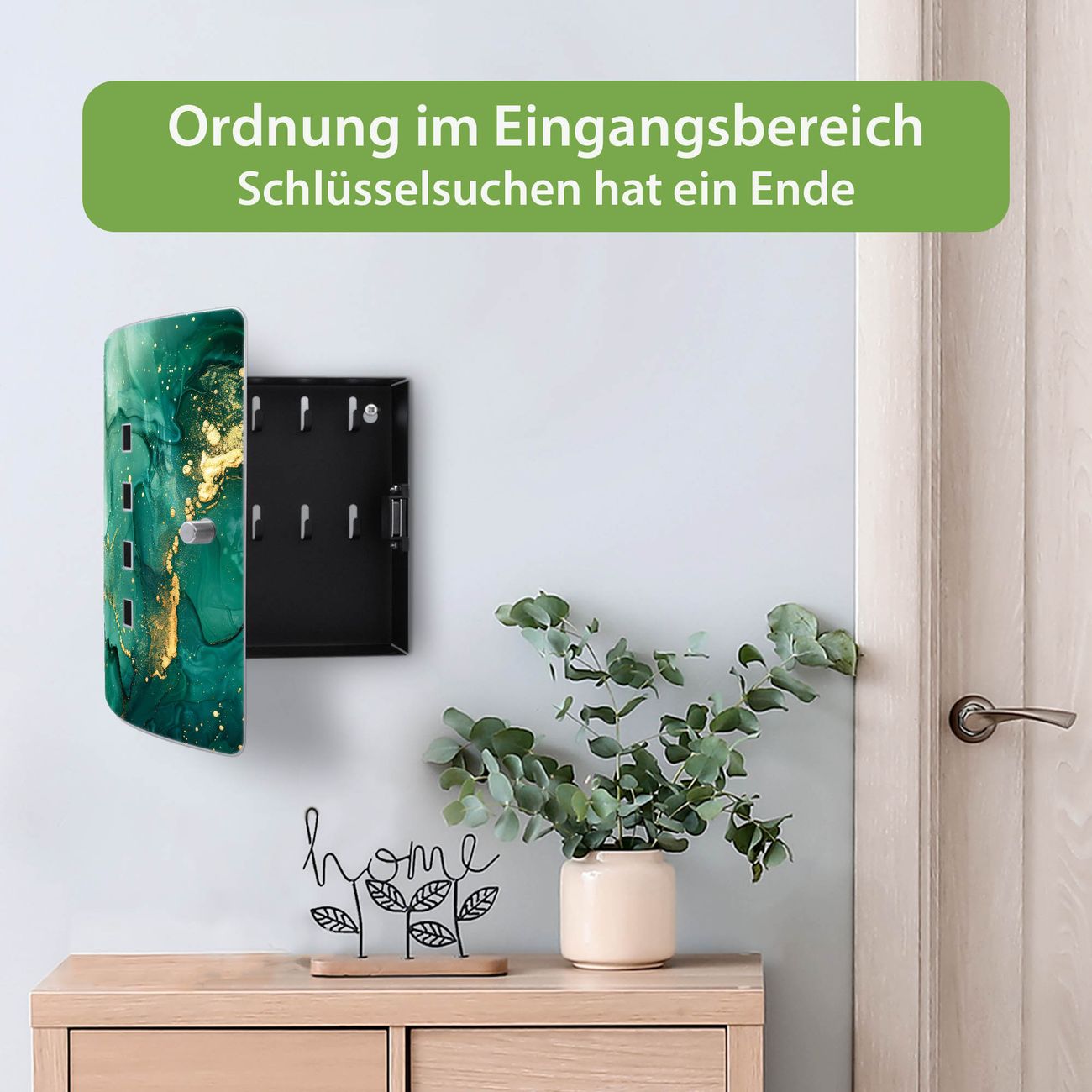 Schlüsselkasten Motiv Grüner Marmor mit Gold 1