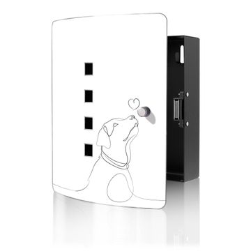 Funktion / Nutzen: Die leicht geschwungene Edelstahltür ist mit einer hochwertigen Motivfolie und dem Motiv Motiv Hundeliebe 2 kaschiert. Ein praktischer Magnetverschluss ermöglicht Ihnen ein schnelles Öffnen und Schließen. Befestigt wird der Schlüsselkasten an 2 Stellen auf der Rückseite, passendes Montagematerial fügen wir bereits bei.