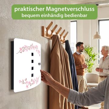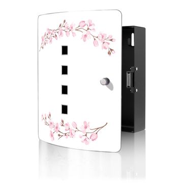 Funktion / Nutzen: Die leicht geschwungene Edelstahltür ist mit einer hochwertigen Motivfolie und dem Motiv Motiv Kirschblütenzauber kaschiert. Ein praktischer Magnetverschluss ermöglicht Ihnen ein schnelles Öffnen und Schließen. Befestigt wird der Schlüsselkasten an 2 Stellen auf der Rückseite, passendes Montagematerial fügen wir bereits bei.