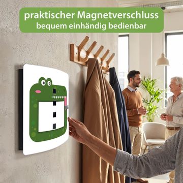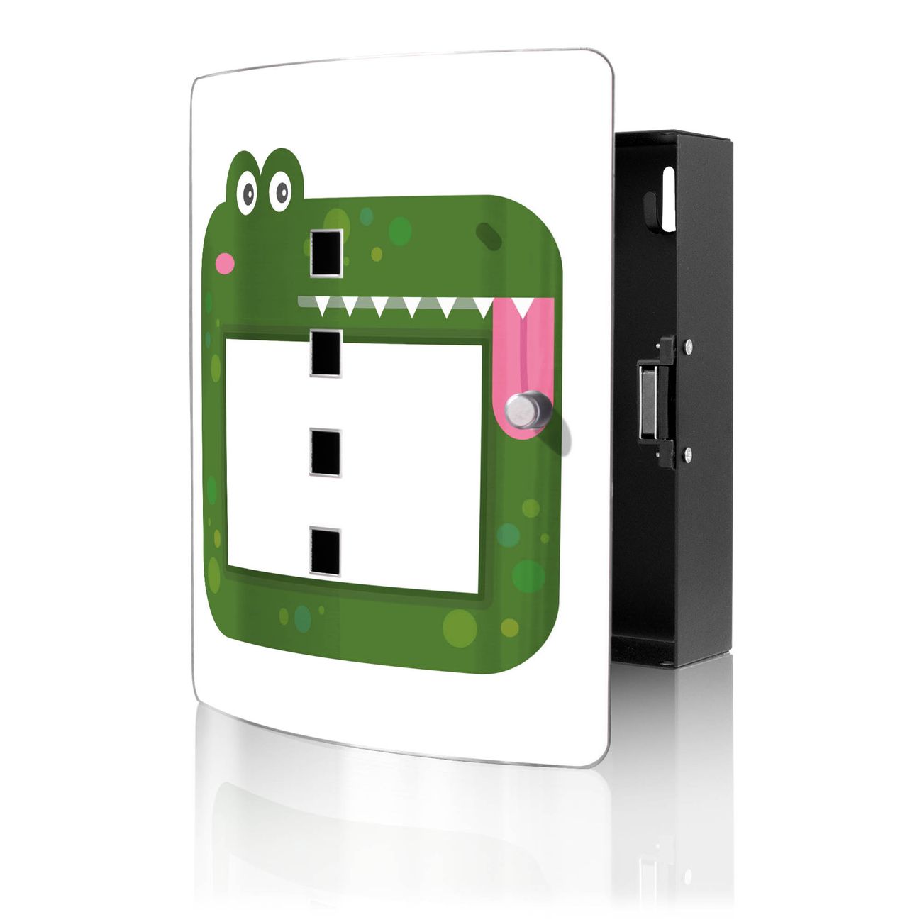 Funktion / Nutzen: Die leicht geschwungene Edelstahltür ist mit einer hochwertigen Motivfolie und dem Motiv Motiv Krokodil Bilderrahmen kaschiert. Ein praktischer Magnetverschluss ermöglicht Ihnen ein schnelles Öffnen und Schließen. Befestigt wird der Schlüsselkasten an 2 Stellen auf der Rückseite, passendes Montagematerial fügen wir bereits bei.