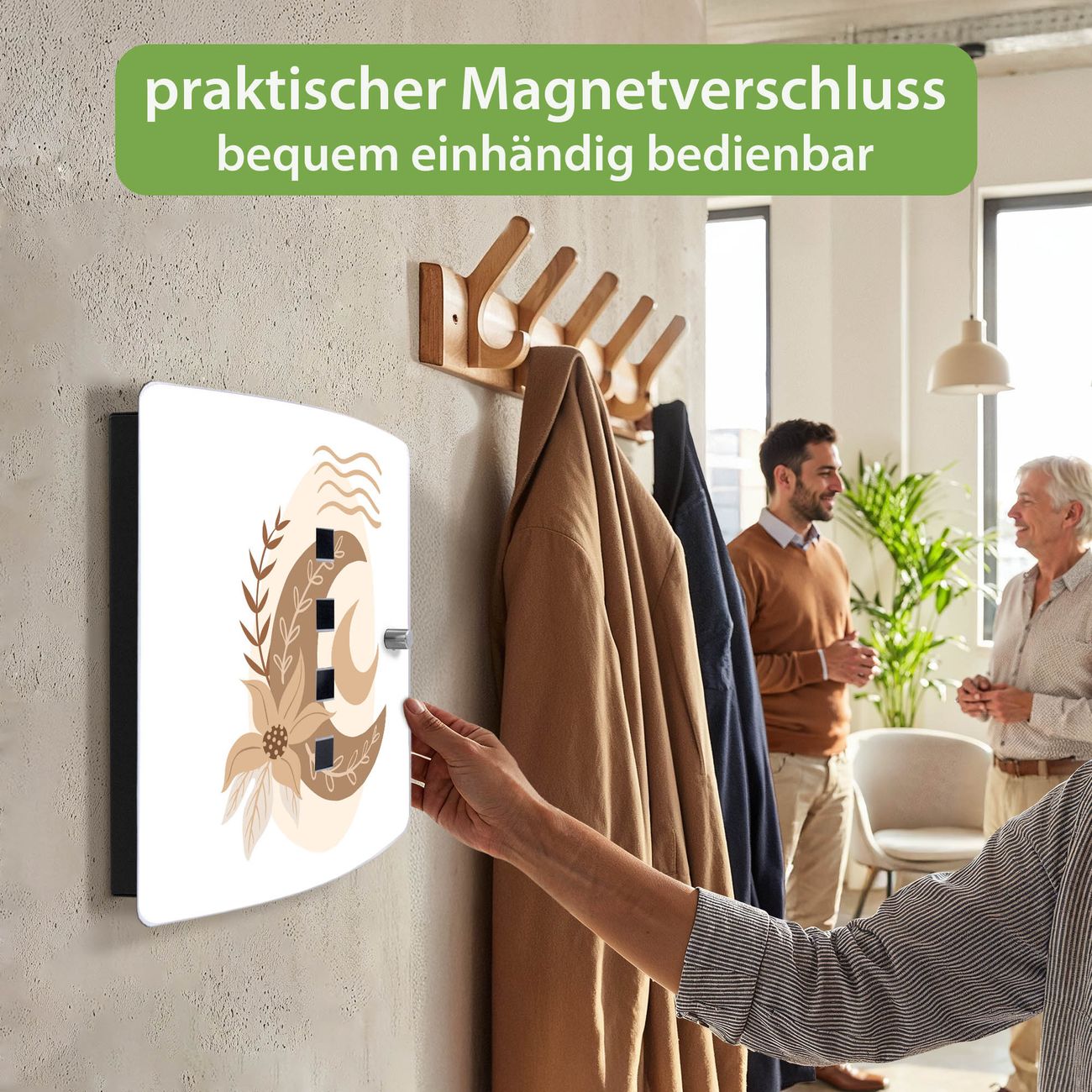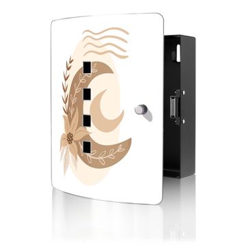 Funktion / Nutzen: Die leicht geschwungene Edelstahltür ist mit einer hochwertigen Motivfolie und dem Motiv Motiv Mondblume kaschiert. Ein praktischer Magnetverschluss ermöglicht Ihnen ein schnelles Öffnen und Schließen. Befestigt wird der Schlüsselkasten an 2 Stellen auf der Rückseite, passendes Montagematerial fügen wir bereits bei.