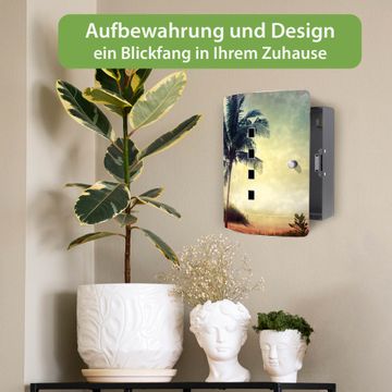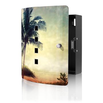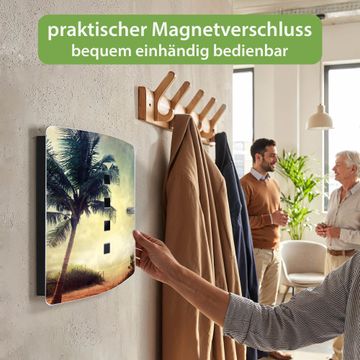 Funktion / Nutzen: Die leicht geschwungene Edelstahltür ist mit einer hochwertigen Motivfolie und dem Motiv Motiv Palme am Strand kaschiert. Ein praktischer Magnetverschluss ermöglicht Ihnen ein schnelles Öffnen und Schließen. Befestigt wird der Schlüsselkasten an 2 Stellen auf der Rückseite, passendes Montagematerial fügen wir bereits bei.