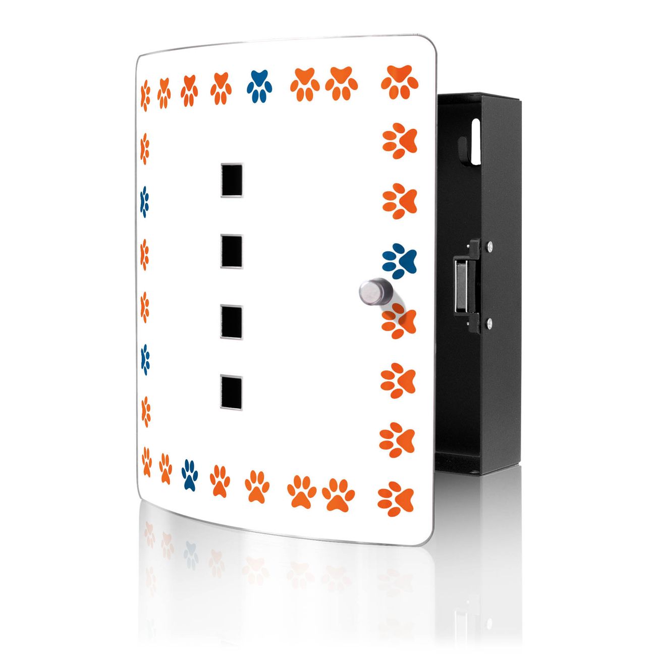 Funktion / Nutzen: Die leicht geschwungene Edelstahltür ist mit einer hochwertigen Motivfolie und dem Motiv Motiv Pfotenrahmen kaschiert. Ein praktischer Magnetverschluss ermöglicht Ihnen ein schnelles Öffnen und Schließen. Befestigt wird der Schlüsselkasten an 2 Stellen auf der Rückseite, passendes Montagematerial fügen wir bereits bei.