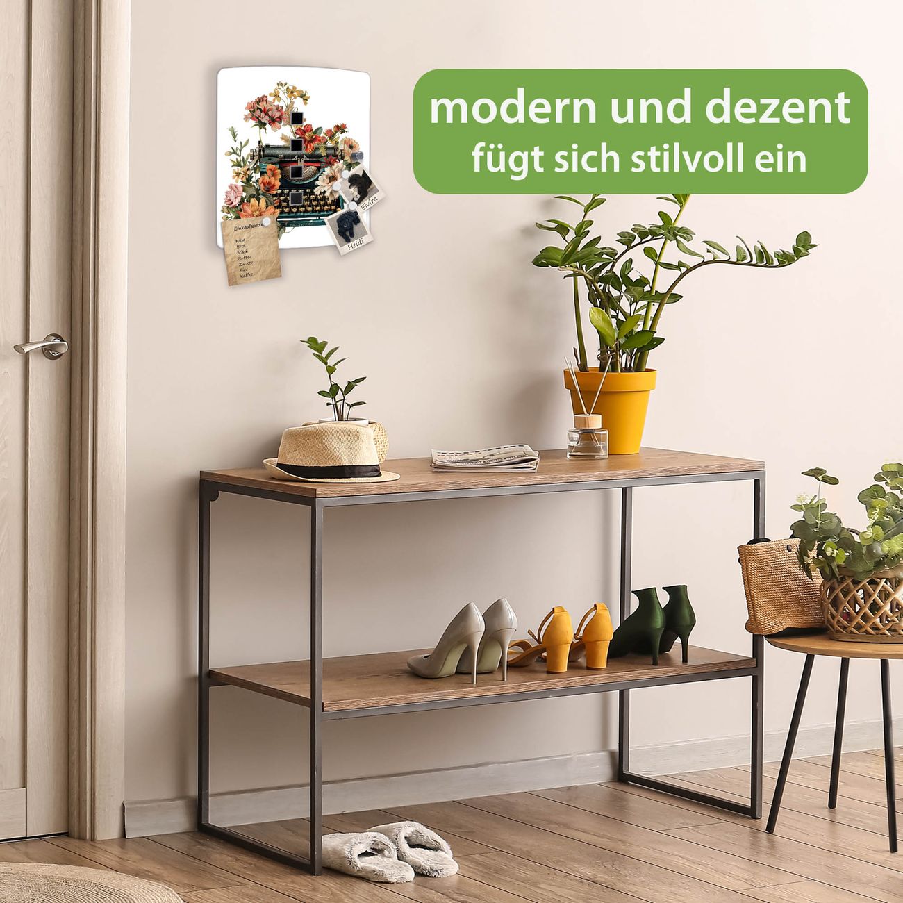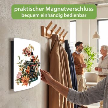 Funktion / Nutzen: Die leicht geschwungene Edelstahltür ist mit einer hochwertigen Motivfolie und dem Motiv Motiv Schreibmaschine Vintage kaschiert. Ein praktischer Magnetverschluss ermöglicht Ihnen ein schnelles Öffnen und Schließen. Befestigt wird der Schlüsselkasten an 2 Stellen auf der Rückseite, passendes Montagematerial fügen wir bereits bei.