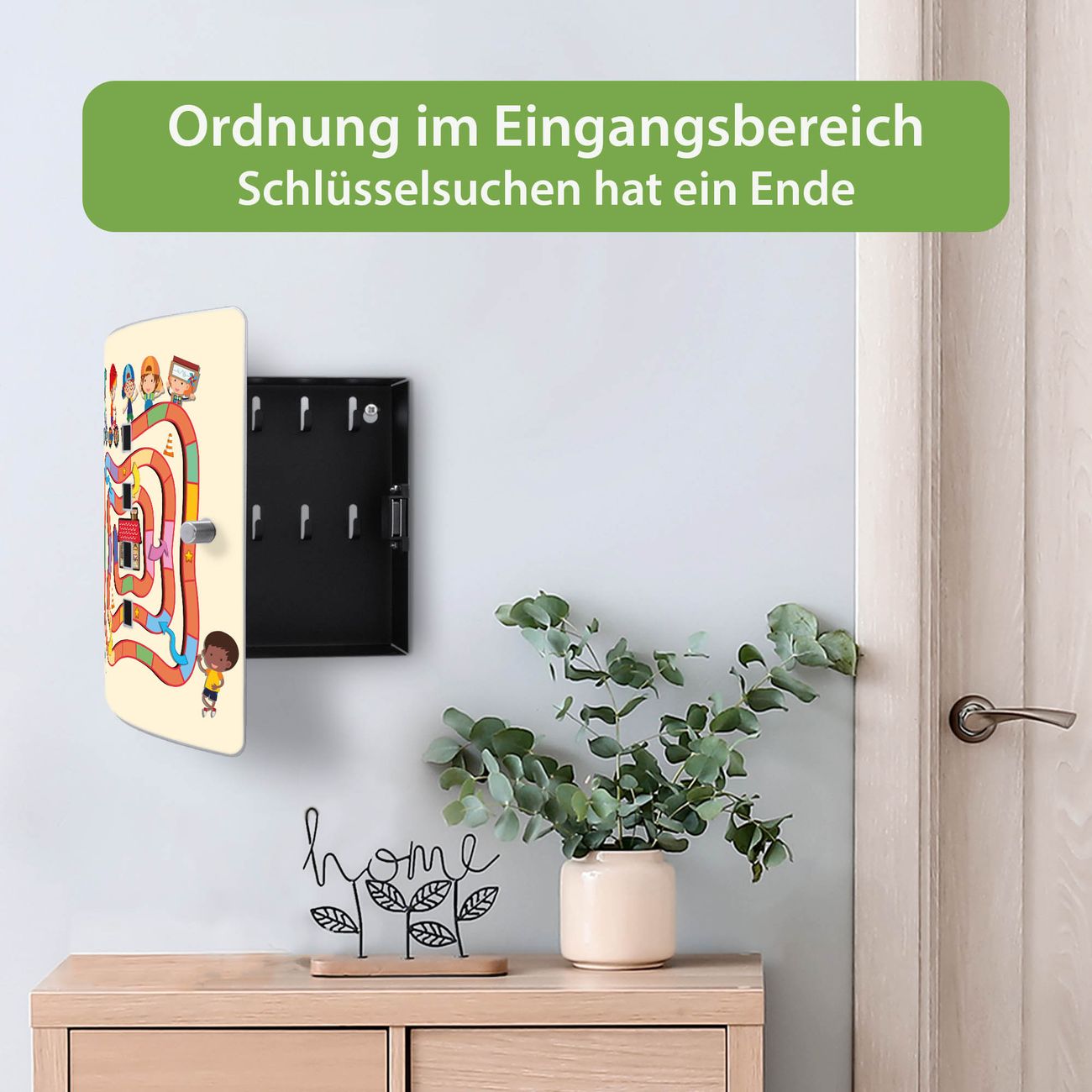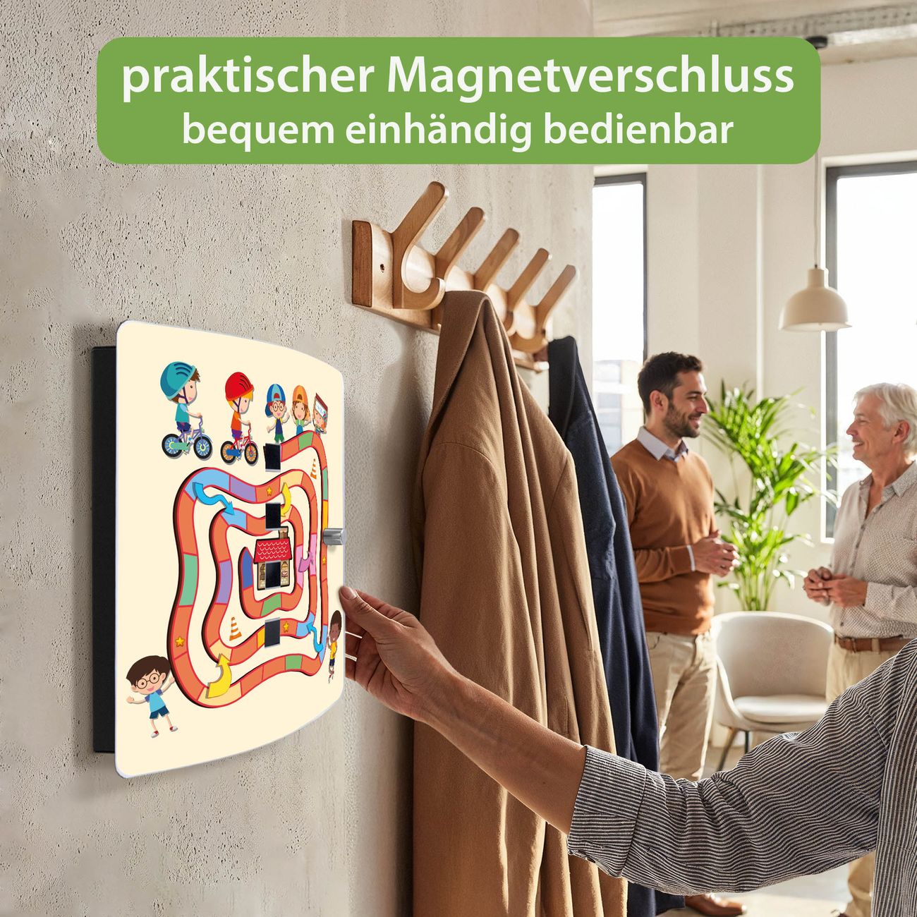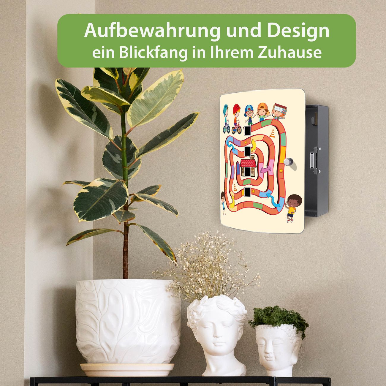 Funktion / Nutzen: Die leicht geschwungene Edelstahltür ist mit einer hochwertigen Motivfolie und dem Motiv Motiv Spielbrett 2 kaschiert. Ein praktischer Magnetverschluss ermöglicht Ihnen ein schnelles Öffnen und Schließen. Befestigt wird der Schlüsselkasten an 2 Stellen auf der Rückseite, passendes Montagematerial fügen wir bereits bei.