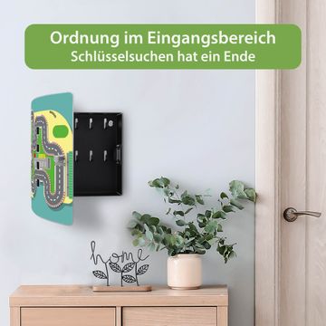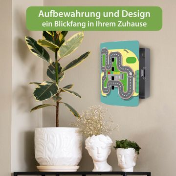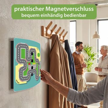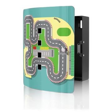 Funktion / Nutzen: Die leicht geschwungene Edelstahltür ist mit einer hochwertigen Motivfolie und dem Motiv Motiv Spielstraße 2 kaschiert. Ein praktischer Magnetverschluss ermöglicht Ihnen ein schnelles Öffnen und Schließen. Befestigt wird der Schlüsselkasten an 2 Stellen auf der Rückseite, passendes Montagematerial fügen wir bereits bei.