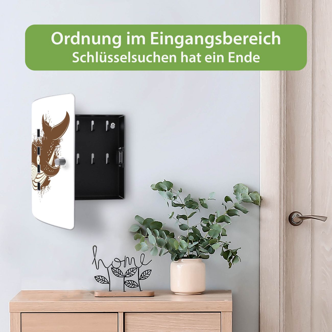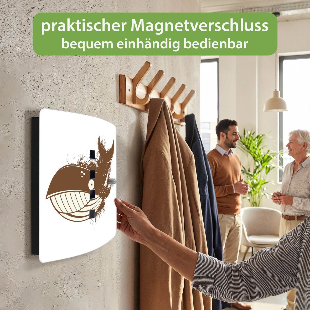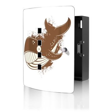 Funktion / Nutzen: Die leicht geschwungene Edelstahltür ist mit einer hochwertigen Motivfolie und dem Motiv Motiv Wal Comic 2 kaschiert. Ein praktischer Magnetverschluss ermöglicht Ihnen ein schnelles Öffnen und Schließen. Befestigt wird der Schlüsselkasten an 2 Stellen auf der Rückseite, passendes Montagematerial fügen wir bereits bei.