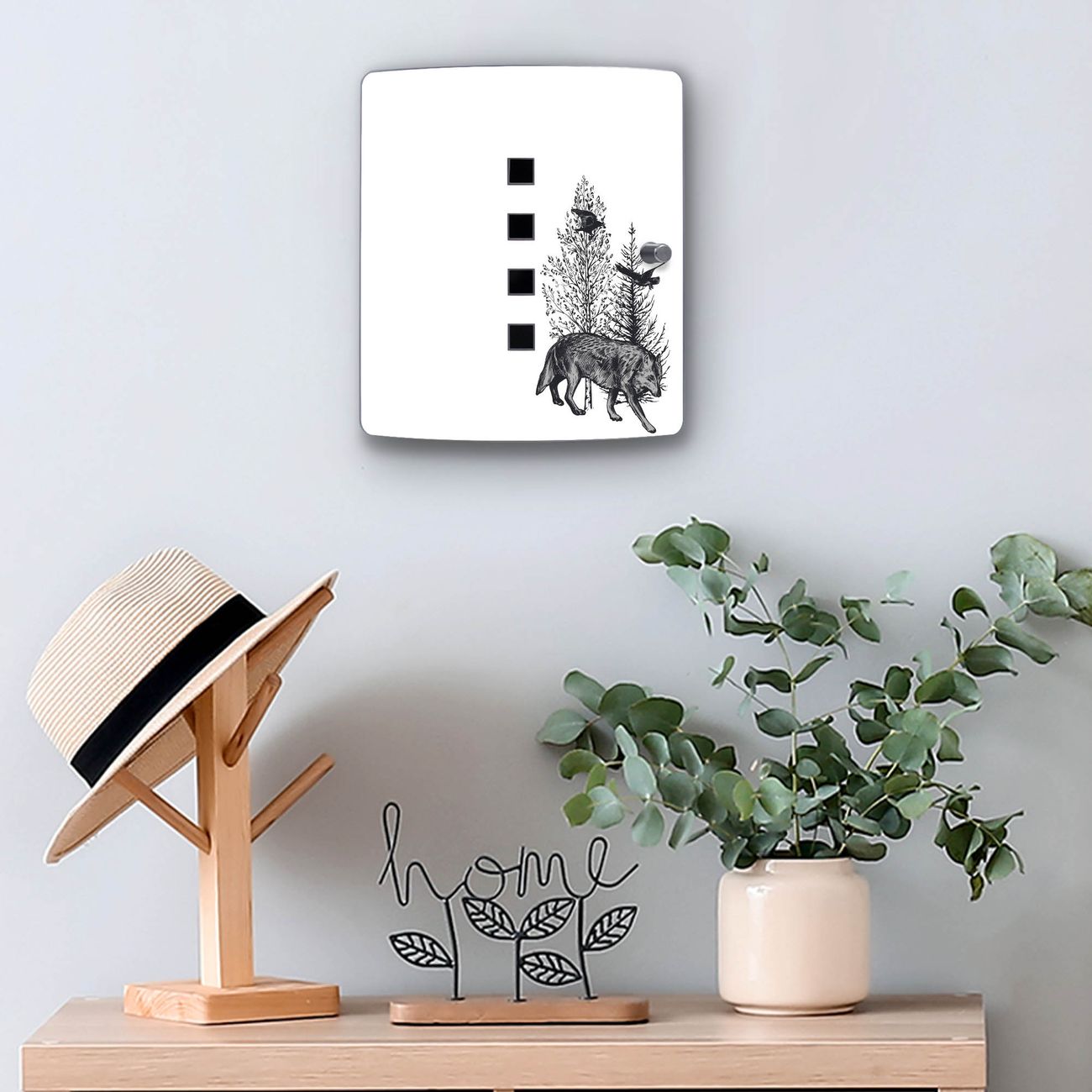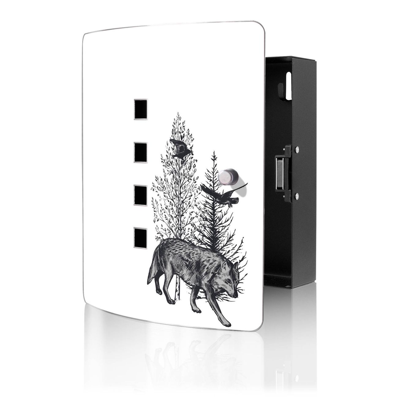 Schlüsselkasten Motiv Wolf in Schwarz-Weiß