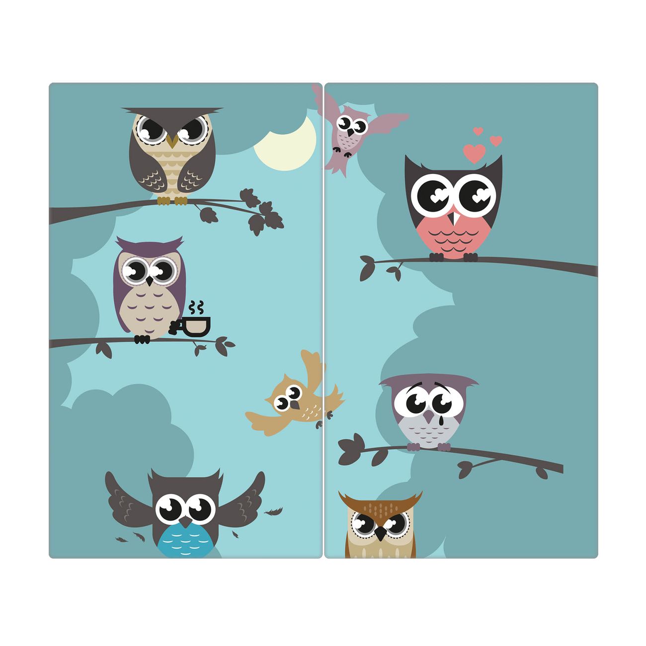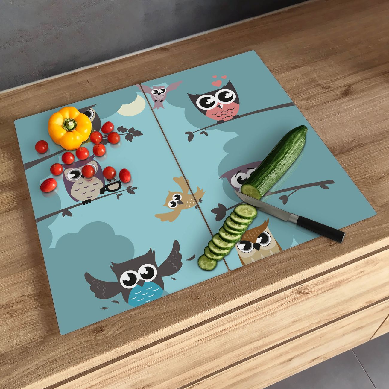 Schneidebrett 1 und 2 teilig Motiv Acht Eulen