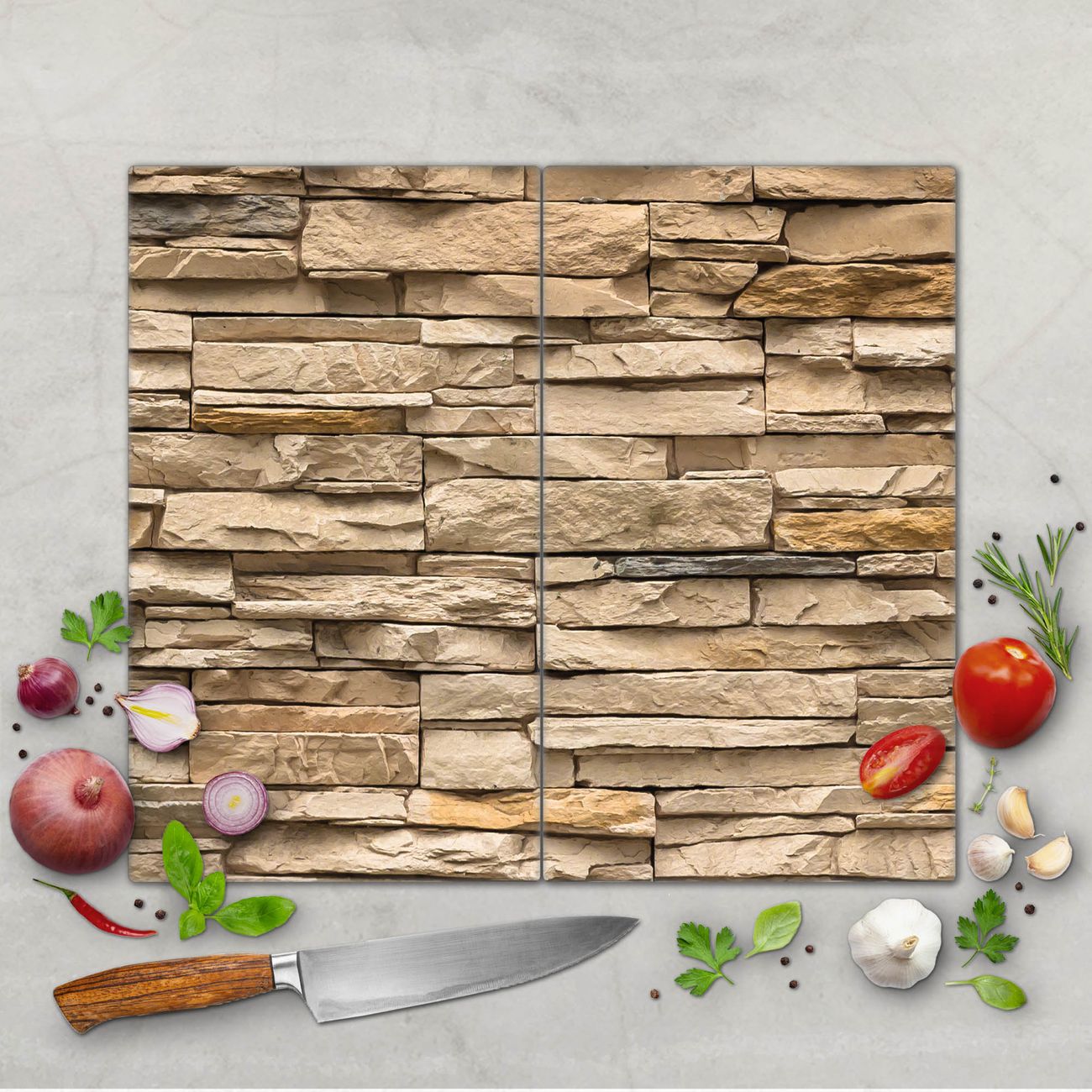 FUNKTION: Das banjado Schneidebrett mit Motiv Alte Mauer ist groß und rutschfest und damit ideal für Ihre Küche. Besonders praktisch. Das Schneidebrett ist vielseitig einsetzbar: ob als Spritzschutz hinter dem Herd für Ihre Küche oder als Glas Schneidebrett als hygienische und geruchsneutrale Unterlage. Sie können ebenfalls heiße Töpfe und Pfannen bis 100°C auf der Herdplattenabdeckung abstellen. Sie erhalten ein Multitalent für Ihre Küche. QUALITÄT: Die Schneideplatte Glas besteht aus hochwertigem, gehärtetem und hitzebeständigem Glas. Wählen Sie aus einem unserer zahlreichen Motive das passende Design für Ihre Küche aus. DETAILS: Das Schneidebrett Glas groß ist in verschiedenen Größen verfügbar. Sie erhalten separate Gumminoppen damit Ihr großes Schneidebrett rutschfest in der Küche steht. VIELSEITIG: Das Schneidebrett modern ist ein Allrounder - als Schneideunterlage Küche direkt auf dem Herd oder separat und als Spritzschutz an der Wand aufgestellt - ein praktisches Küchenutensil. BANJADO: Auf Wunsch fertigen wir das Glas Schneide Brett auch als Sondergröße an. Mehrteilige Platten sind auch möglich. Kontaktieren Sie uns gern für eine Spezialanfertigung Ihrer Glasplatte Küche.