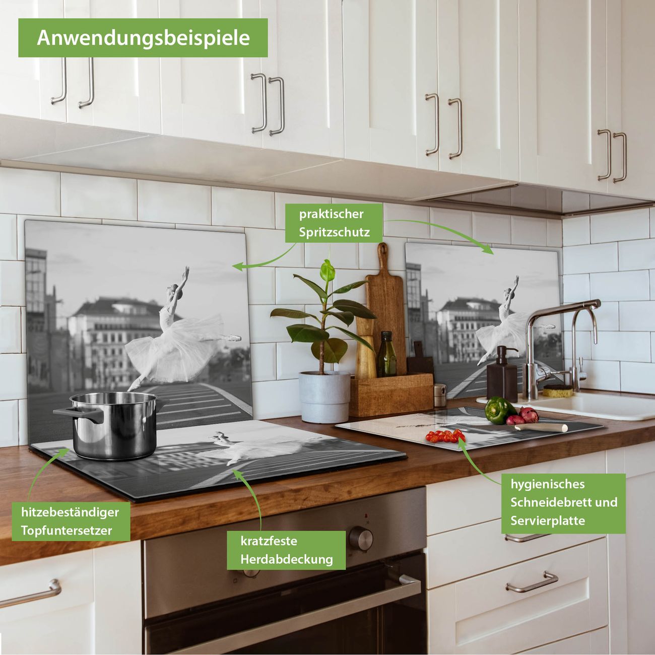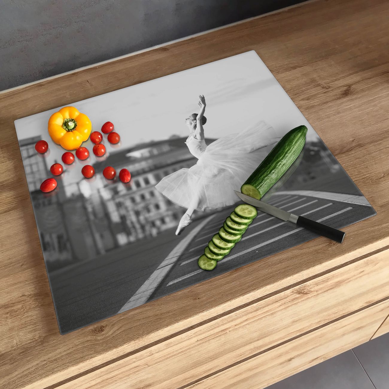 FUNKTION: Das banjado Schneidebrett mit Motiv Ballerina In Moskau ist groß und rutschfest und damit ideal für Ihre Küche. Besonders praktisch. Das Schneidebrett ist vielseitig einsetzbar: ob als Spritzschutz hinter dem Herd für Ihre Küche oder als Glas Schneidebrett als hygienische und geruchsneutrale Unterlage. Sie können ebenfalls heiße Töpfe und Pfannen bis 100°C auf der Herdplattenabdeckung abstellen. Sie erhalten ein Multitalent für Ihre Küche. QUALITÄT: Die Schneideplatte Glas besteht aus hochwertigem, gehärtetem und hitzebeständigem Glas. Wählen Sie aus einem unserer zahlreichen Motive das passende Design für Ihre Küche aus. DETAILS: Das Schneidebrett Glas groß ist in verschiedenen Größen verfügbar. Sie erhalten separate Gumminoppen damit Ihr großes Schneidebrett rutschfest in der Küche steht. VIELSEITIG: Das Schneidebrett modern ist ein Allrounder - als Schneideunterlage Küche direkt auf dem Herd oder separat und als Spritzschutz an der Wand aufgestellt - ein praktisches Küchenutensil. BANJADO: Auf Wunsch fertigen wir das Glas Schneide Brett auch als Sondergröße an. Mehrteilige Platten sind auch möglich. Kontaktieren Sie uns gern für eine Spezialanfertigung Ihrer Glasplatte Küche.