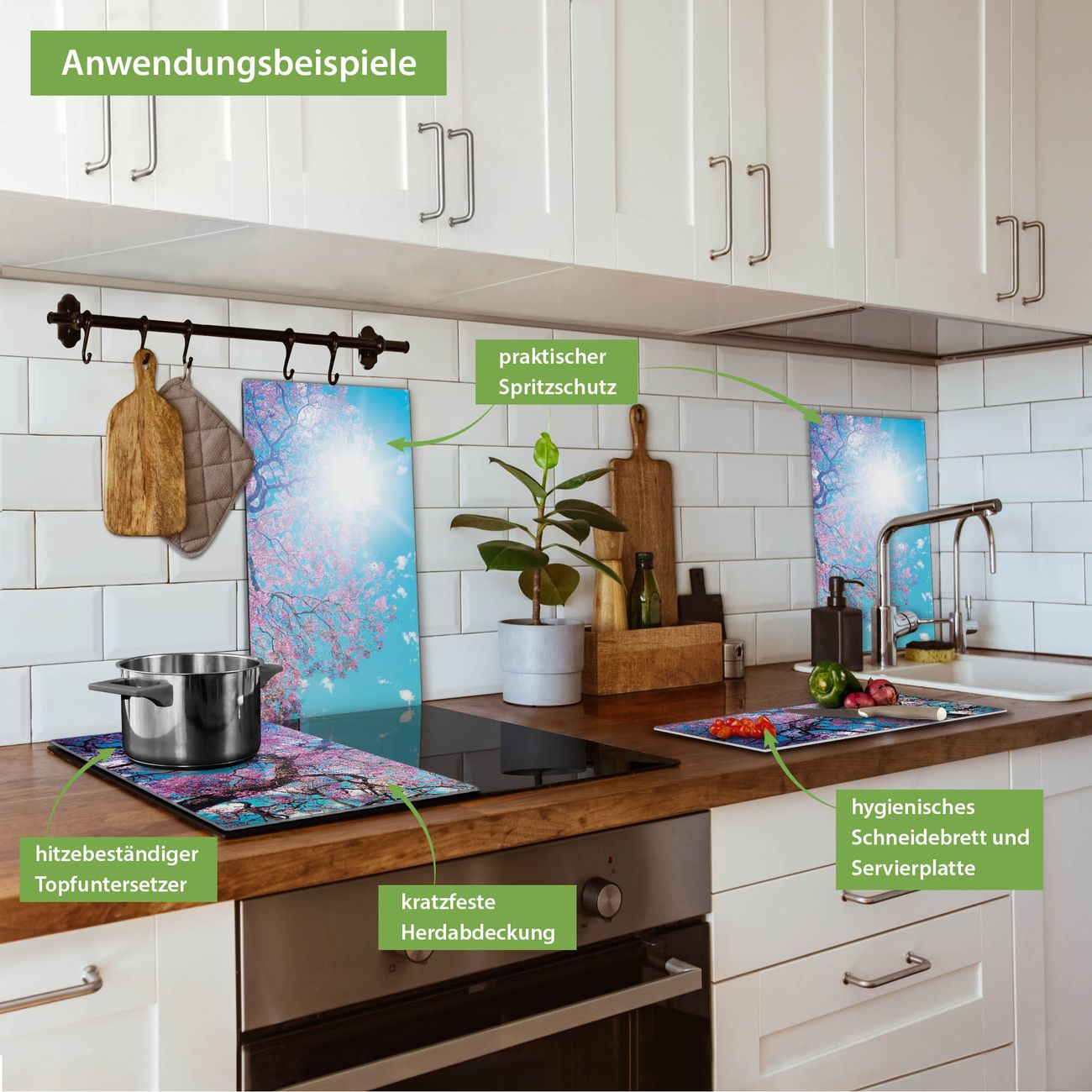 FUNKTION: Das banjado Schneidebrett mit Motiv Baumkrone 2 ist groß und rutschfest und damit ideal für Ihre Küche. Besonders praktisch. Das Schneidebrett ist vielseitig einsetzbar: ob als Spritzschutz hinter dem Herd für Ihre Küche oder als Glas Schneidebrett als hygienische und geruchsneutrale Unterlage. Sie können ebenfalls heiße Töpfe und Pfannen bis 100°C auf der Herdplattenabdeckung abstellen. Sie erhalten ein Multitalent für Ihre Küche. QUALITÄT: Die Schneideplatte Glas besteht aus hochwertigem, gehärtetem und hitzebeständigem Glas. Wählen Sie aus einem unserer zahlreichen Motive das passende Design für Ihre Küche aus. DETAILS: Das Schneidebrett Glas groß ist in verschiedenen Größen verfügbar. Sie erhalten separate Gumminoppen damit Ihr großes Schneidebrett rutschfest in der Küche steht. VIELSEITIG: Das Schneidebrett modern ist ein Allrounder - als Schneideunterlage Küche direkt auf dem Herd oder separat und als Spritzschutz an der Wand aufgestellt - ein praktisches Küchenutensil. BANJADO: Auf Wunsch fertigen wir das Glas Schneide Brett auch als Sondergröße an. Mehrteilige Platten sind auch möglich. Kontaktieren Sie uns gern für eine Spezialanfertigung Ihrer Glasplatte Küche.