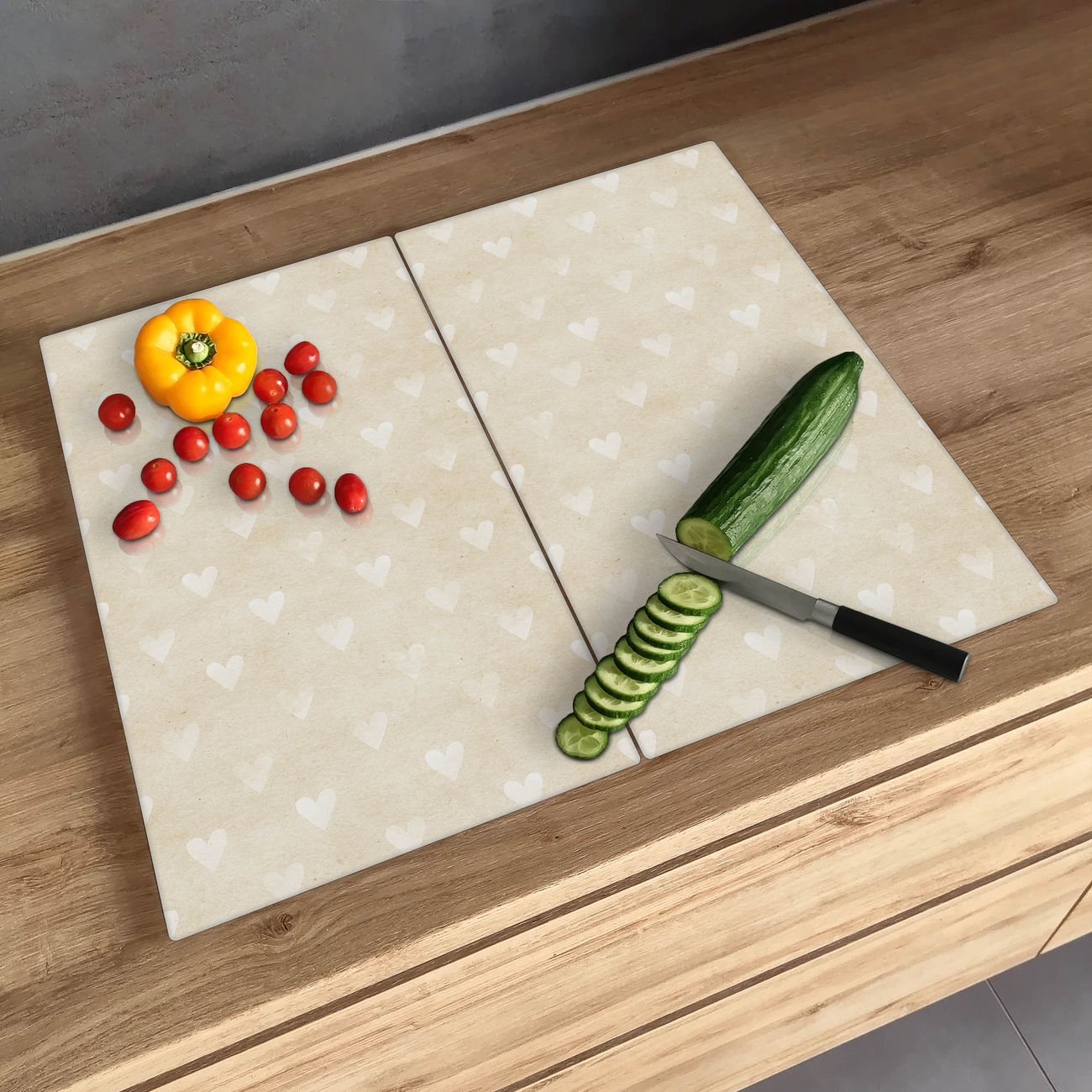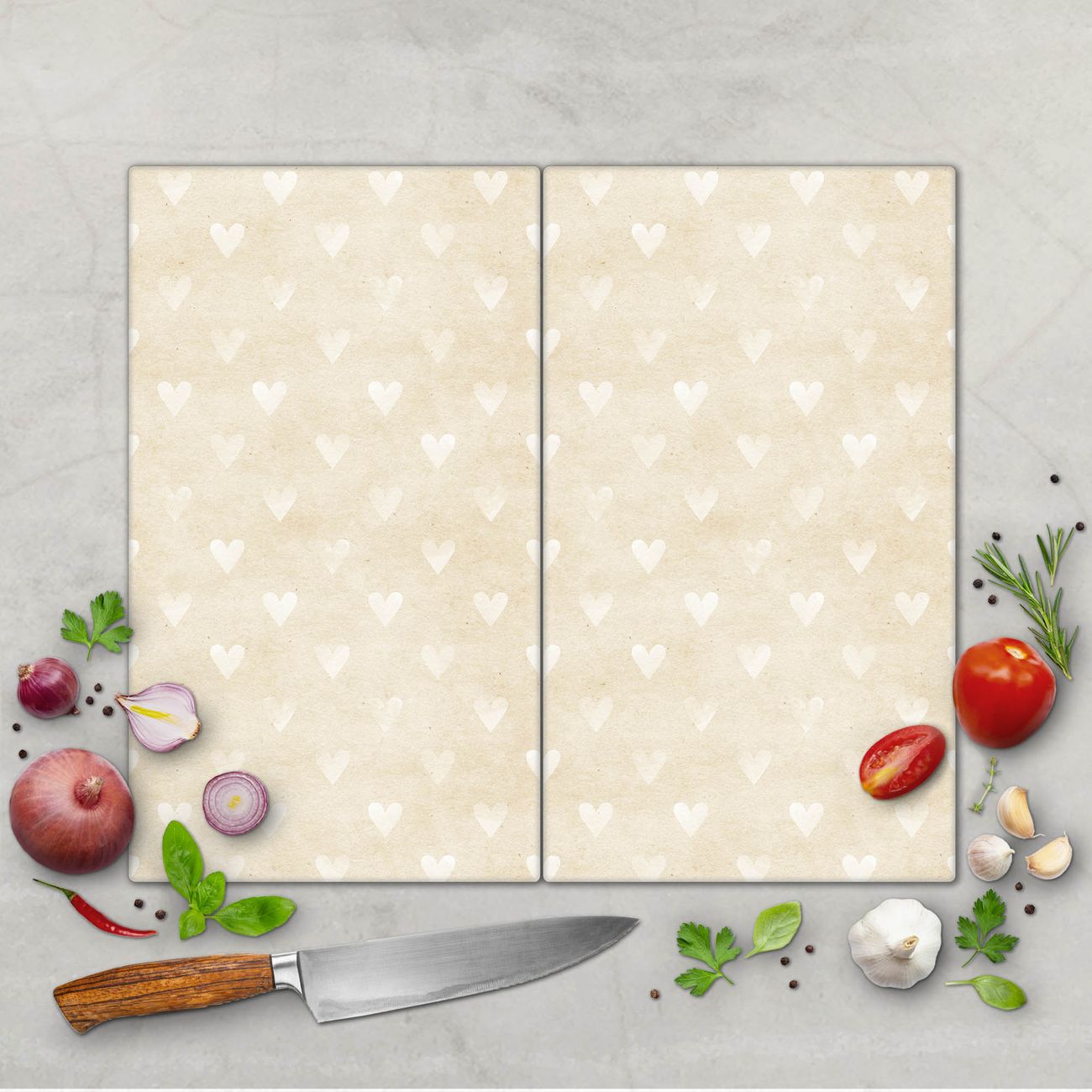 Schneidebrett 1 und 2 teilig Motiv Beige Herzen