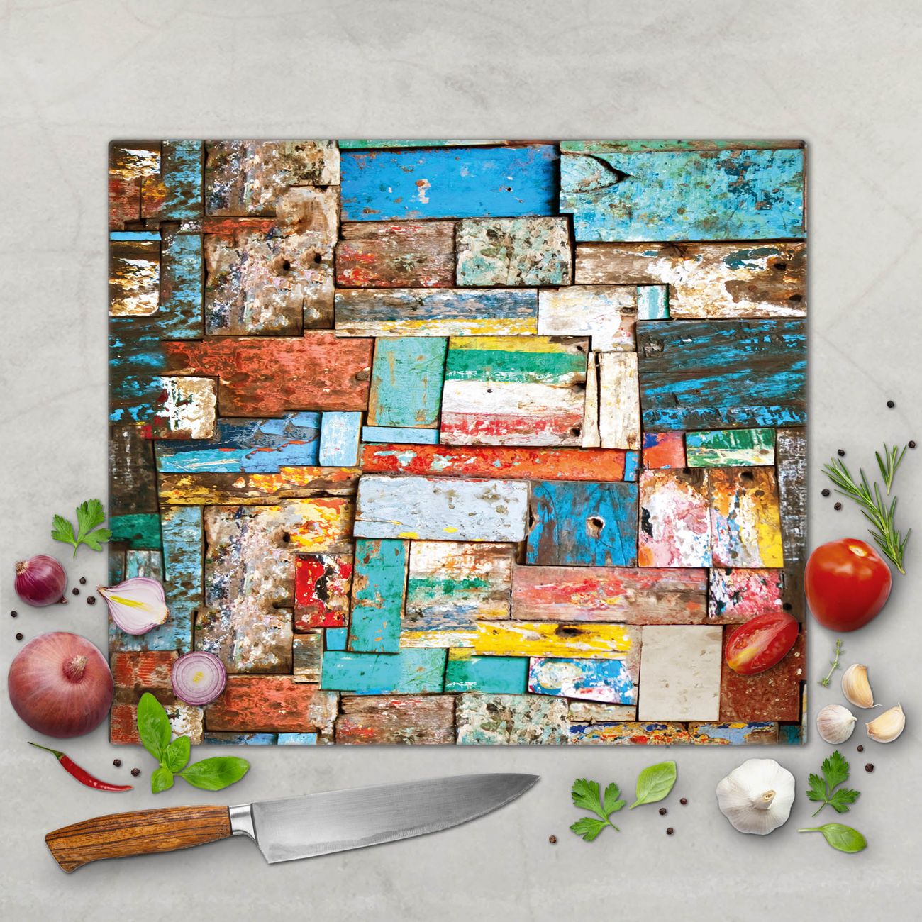 Schneidebrett 1 und 2 teilig Motiv Bunte Holzschindeln
