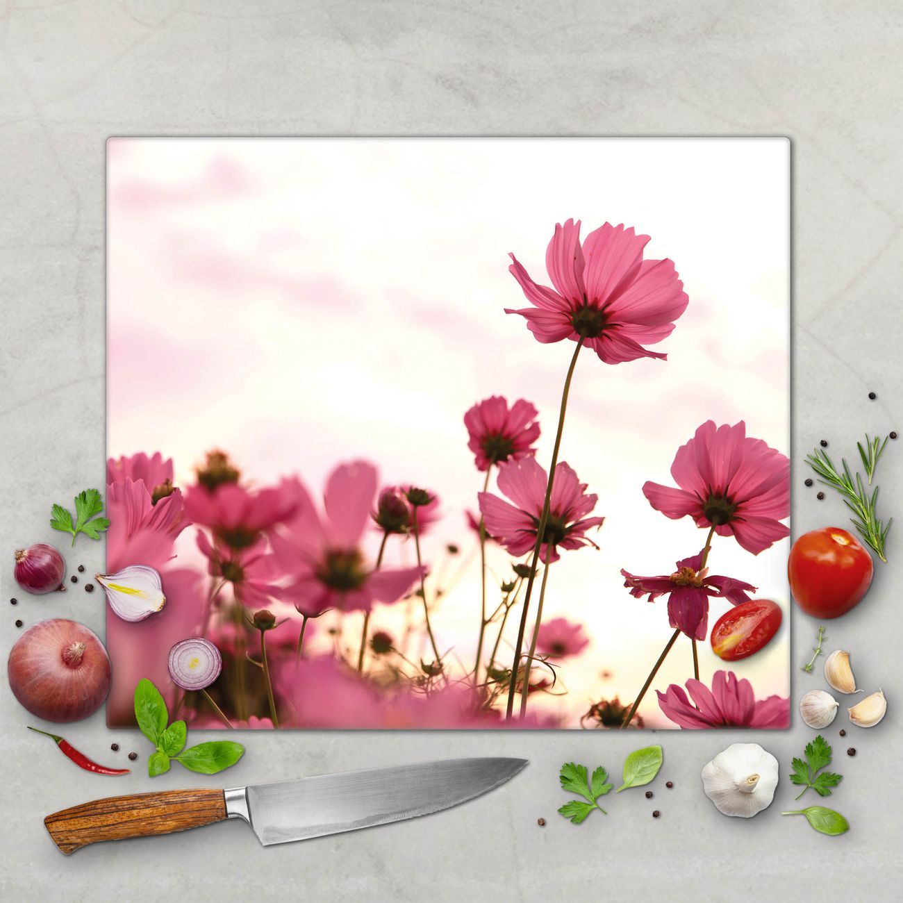 Schneidebrett 1 und 2 teilig Motiv Cosmea