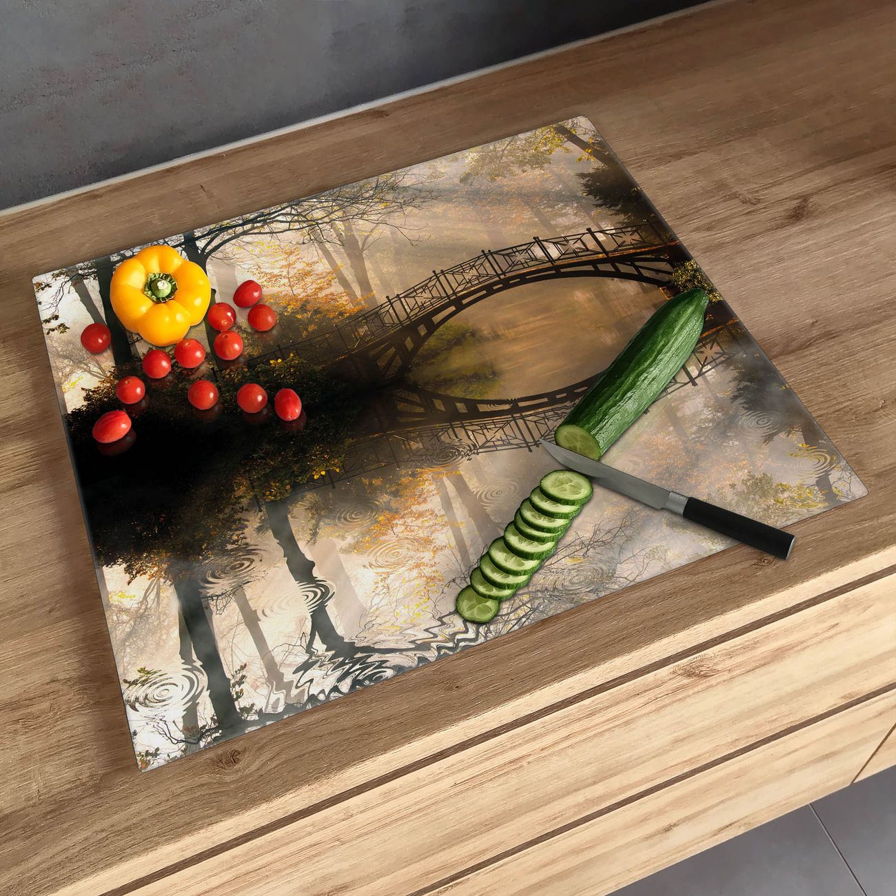 FUNKTION: Das banjado Schneidebrett mit Motiv Englischer Garten ist groß und rutschfest und damit ideal für Ihre Küche. Besonders praktisch. Das Schneidebrett ist vielseitig einsetzbar: ob als Spritzschutz hinter dem Herd für Ihre Küche oder als Glas Schneidebrett als hygienische und geruchsneutrale Unterlage. Sie können ebenfalls heiße Töpfe und Pfannen bis 100°C auf der Herdplattenabdeckung abstellen. Sie erhalten ein Multitalent für Ihre Küche. QUALITÄT: Die Schneideplatte Glas besteht aus hochwertigem, gehärtetem und hitzebeständigem Glas. Wählen Sie aus einem unserer zahlreichen Motive das passende Design für Ihre Küche aus. DETAILS: Das Schneidebrett Glas groß ist in verschiedenen Größen verfügbar. Sie erhalten separate Gumminoppen damit Ihr großes Schneidebrett rutschfest in der Küche steht. VIELSEITIG: Das Schneidebrett modern ist ein Allrounder - als Schneideunterlage Küche direkt auf dem Herd oder separat und als Spritzschutz an der Wand aufgestellt - ein praktisches Küchenutensil. BANJADO: Auf Wunsch fertigen wir das Glas Schneide Brett auch als Sondergröße an. Mehrteilige Platten sind auch möglich. Kontaktieren Sie uns gern für eine Spezialanfertigung Ihrer Glasplatte Küche.