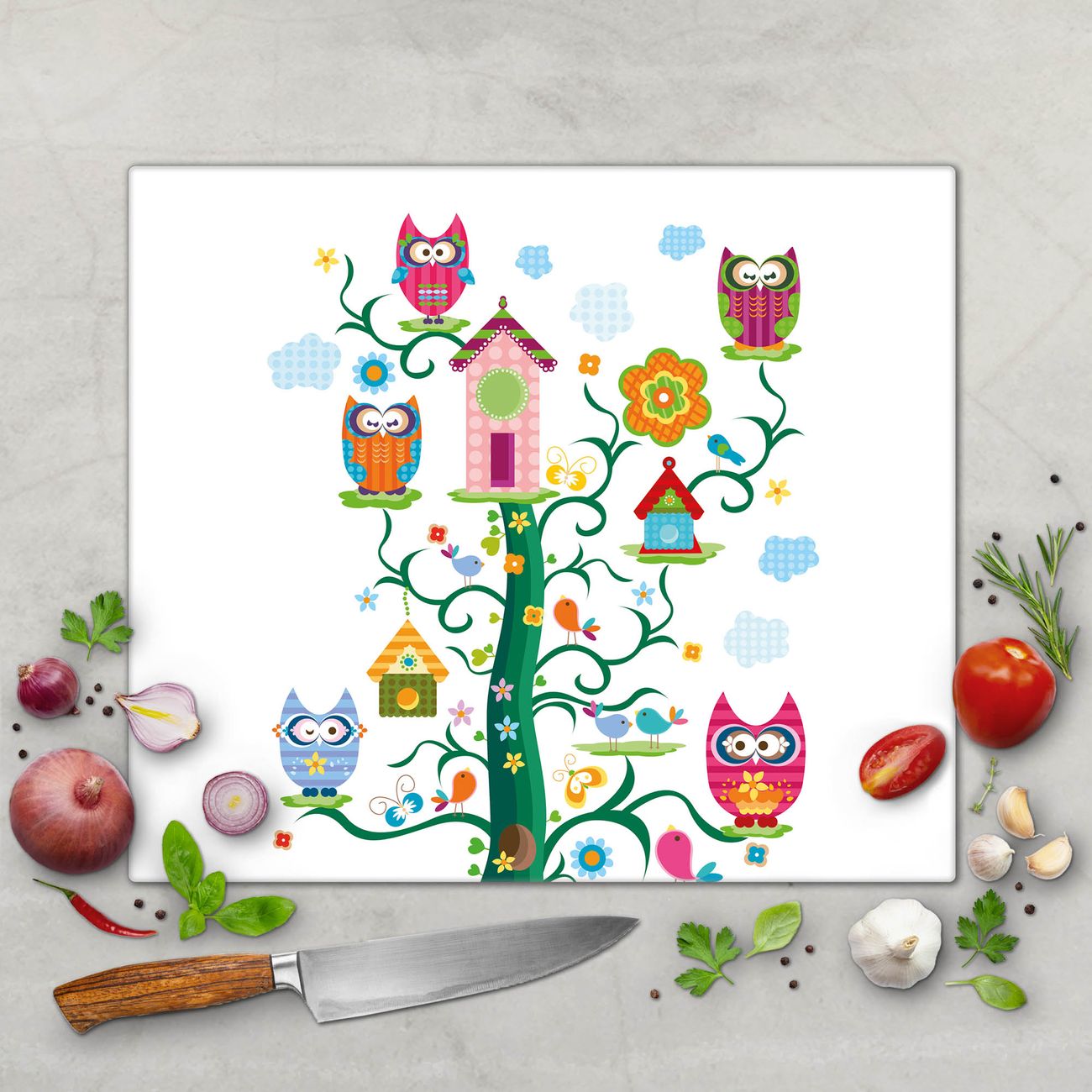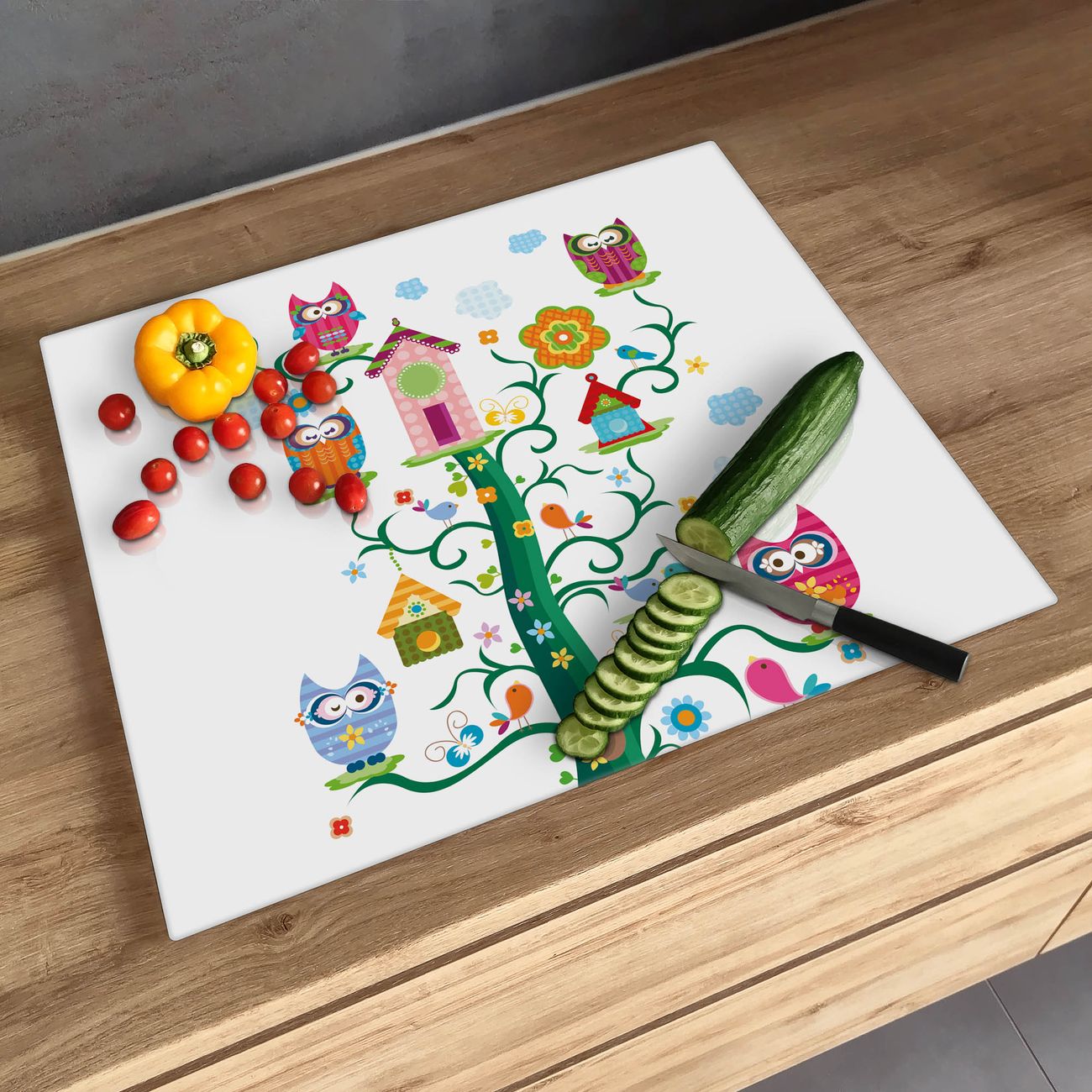 Schneidebrett 1 und 2 teilig Motiv Eulenfamilie