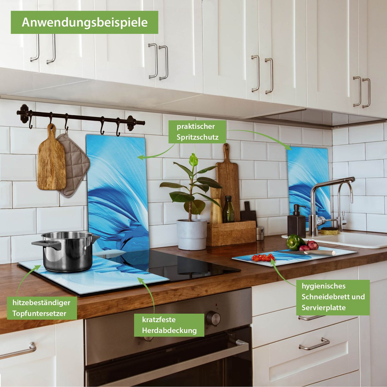 FUNKTION: Das banjado Schneidebrett mit Motiv Ewiges Eis ist groß und rutschfest und damit ideal für Ihre Küche. Besonders praktisch. Das Schneidebrett ist vielseitig einsetzbar: ob als Spritzschutz hinter dem Herd für Ihre Küche oder als Glas Schneidebrett als hygienische und geruchsneutrale Unterlage. Sie können ebenfalls heiße Töpfe und Pfannen bis 100°C auf der Herdplattenabdeckung abstellen. Sie erhalten ein Multitalent für Ihre Küche. QUALITÄT: Die Schneideplatte Glas besteht aus hochwertigem, gehärtetem und hitzebeständigem Glas. Wählen Sie aus einem unserer zahlreichen Motive das passende Design für Ihre Küche aus. DETAILS: Das Schneidebrett Glas groß ist in verschiedenen Größen verfügbar. Sie erhalten separate Gumminoppen damit Ihr großes Schneidebrett rutschfest in der Küche steht. VIELSEITIG: Das Schneidebrett modern ist ein Allrounder - als Schneideunterlage Küche direkt auf dem Herd oder separat und als Spritzschutz an der Wand aufgestellt - ein praktisches Küchenutensil. BANJADO: Auf Wunsch fertigen wir das Glas Schneide Brett auch als Sondergröße an. Mehrteilige Platten sind auch möglich. Kontaktieren Sie uns gern für eine Spezialanfertigung Ihrer Glasplatte Küche.