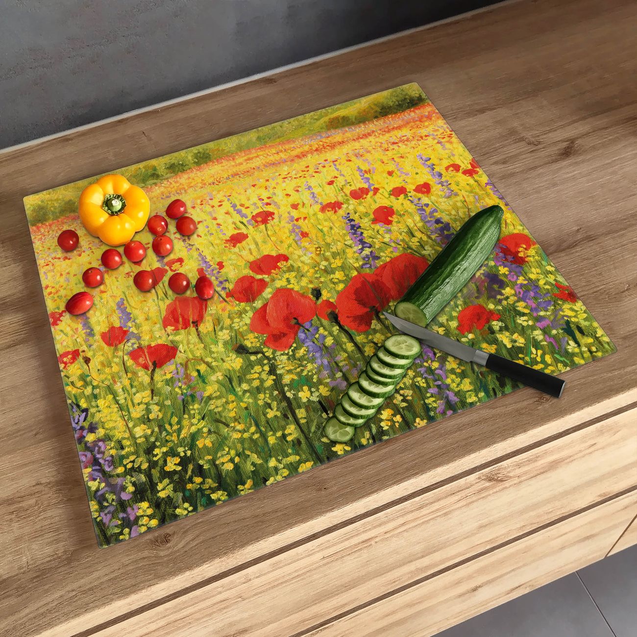 Schneidebrett 1 und 2 teilig Motiv Feld Mit Mohnblumen