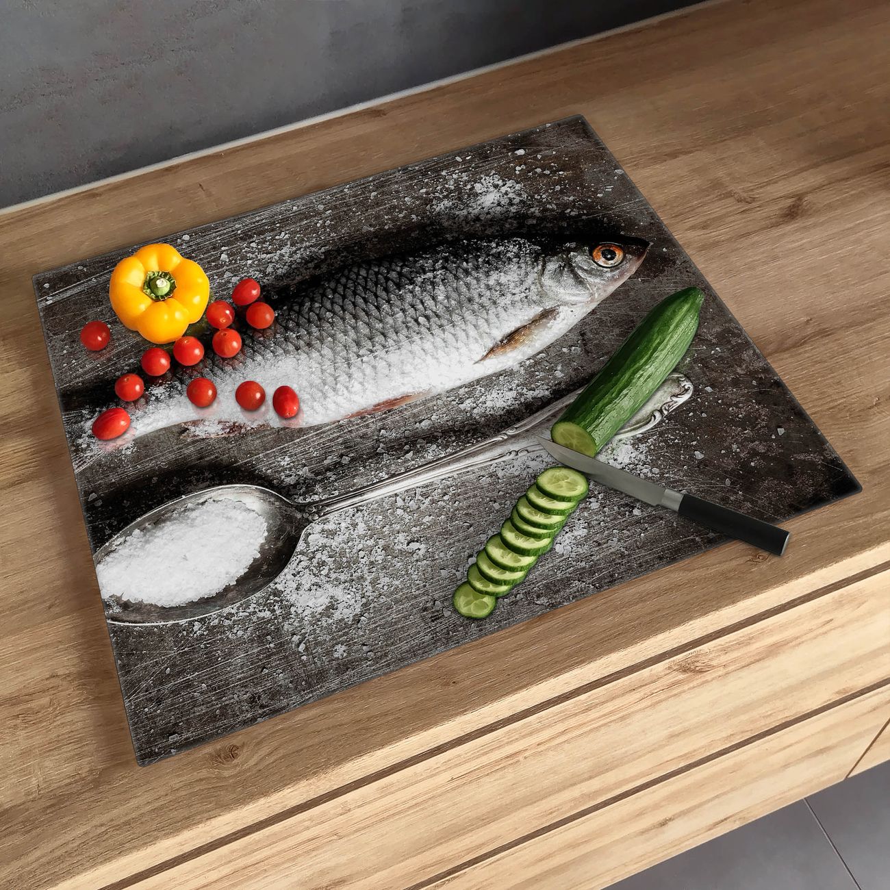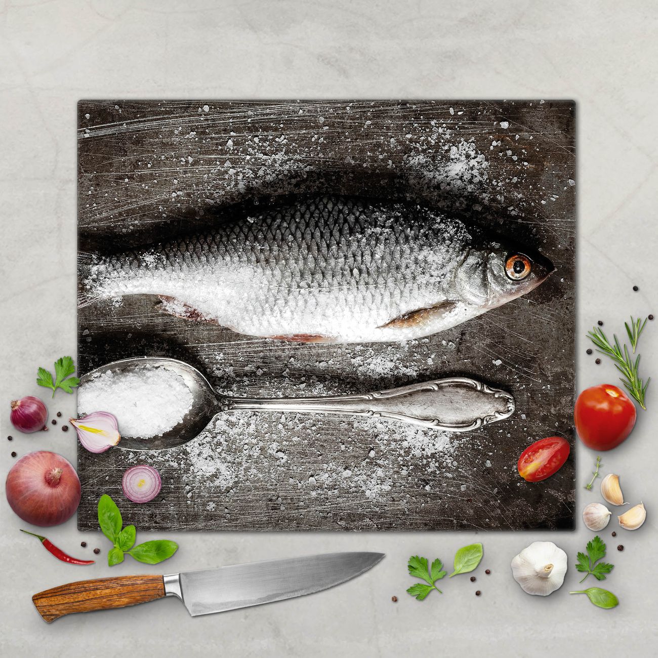 Schneidebrett 1 und 2 teilig Motiv Fisch Und Salz