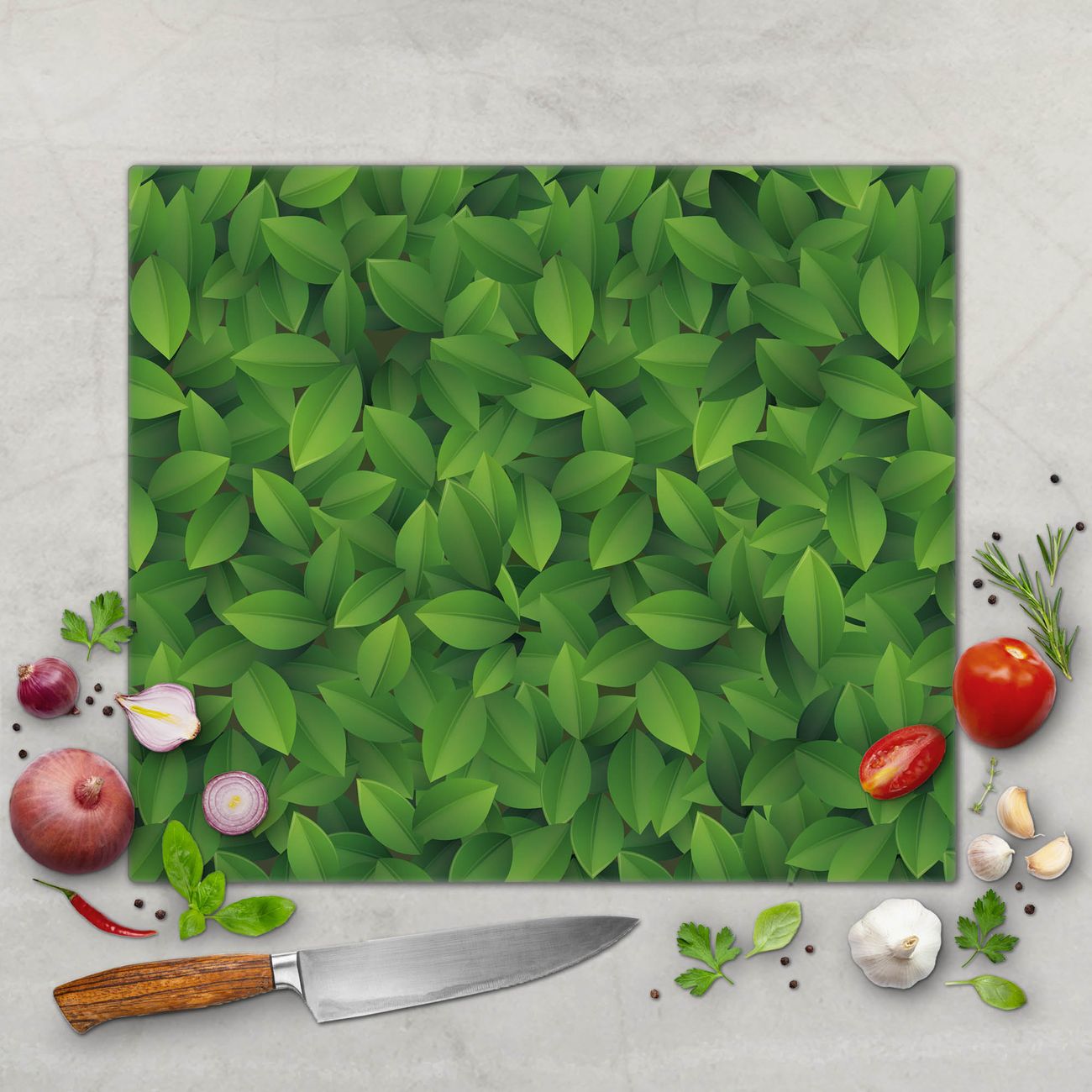 FUNKTION: Das banjado Schneidebrett mit Motiv Grüne Blätter ist groß und rutschfest und damit ideal für Ihre Küche. Besonders praktisch. Das Schneidebrett ist vielseitig einsetzbar: ob als Spritzschutz hinter dem Herd für Ihre Küche oder als Glas Schneidebrett als hygienische und geruchsneutrale Unterlage. Sie können ebenfalls heiße Töpfe und Pfannen bis 100°C auf der Herdplattenabdeckung abstellen. Sie erhalten ein Multitalent für Ihre Küche. QUALITÄT: Die Schneideplatte Glas besteht aus hochwertigem, gehärtetem und hitzebeständigem Glas. Wählen Sie aus einem unserer zahlreichen Motive das passende Design für Ihre Küche aus. DETAILS: Das Schneidebrett Glas groß ist in verschiedenen Größen verfügbar. Sie erhalten separate Gumminoppen damit Ihr großes Schneidebrett rutschfest in der Küche steht. VIELSEITIG: Das Schneidebrett modern ist ein Allrounder - als Schneideunterlage Küche direkt auf dem Herd oder separat und als Spritzschutz an der Wand aufgestellt - ein praktisches Küchenutensil. BANJADO: Auf Wunsch fertigen wir das Glas Schneide Brett auch als Sondergröße an. Mehrteilige Platten sind auch möglich. Kontaktieren Sie uns gern für eine Spezialanfertigung Ihrer Glasplatte Küche.