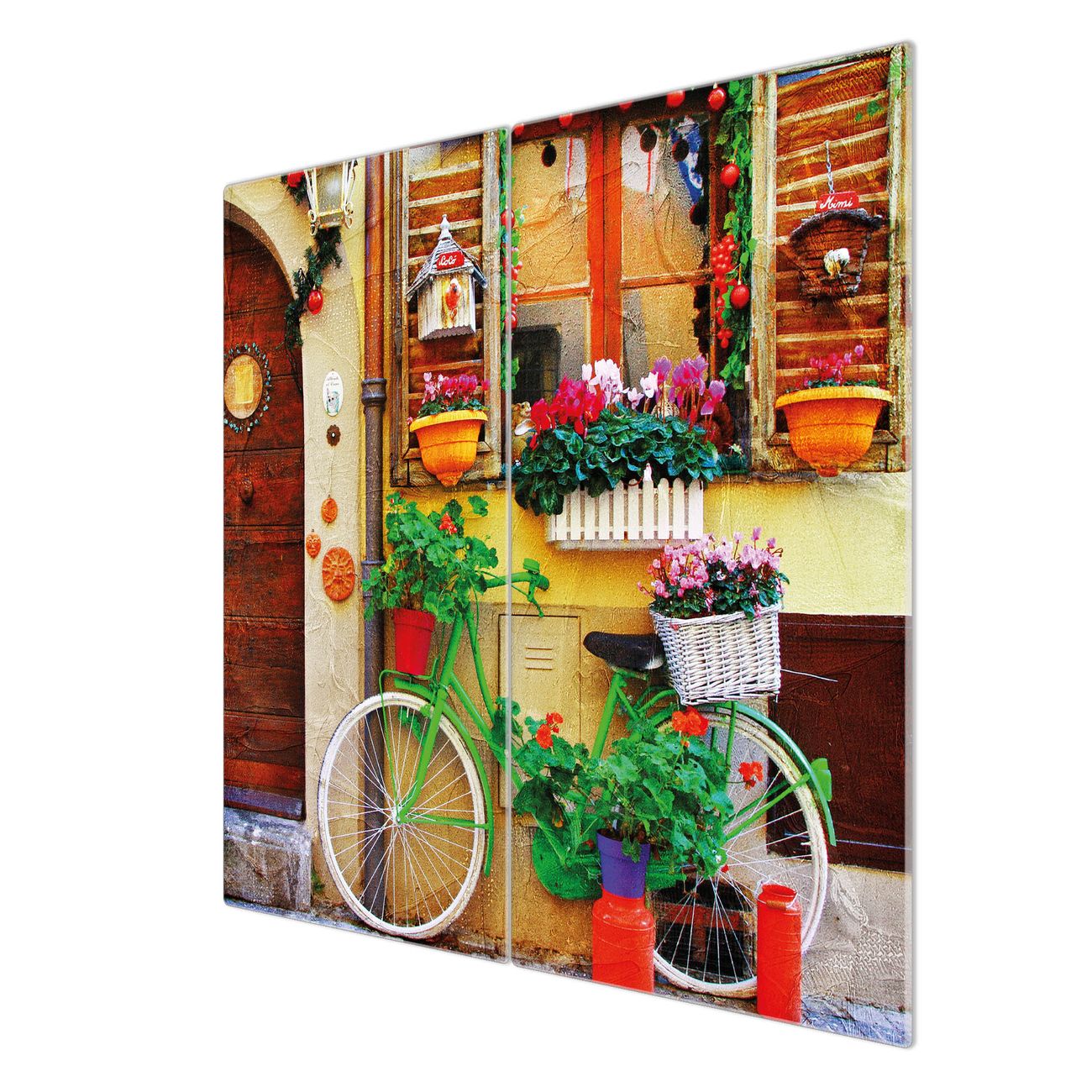 FUNKTION: Das banjado Schneidebrett mit Motiv Grünes Fahrrad ist groß und rutschfest und damit ideal für Ihre Küche. Besonders praktisch. Das Schneidebrett ist vielseitig einsetzbar: ob als Spritzschutz hinter dem Herd für Ihre Küche oder als Glas Schneidebrett als hygienische und geruchsneutrale Unterlage. Sie können ebenfalls heiße Töpfe und Pfannen bis 100°C auf der Herdplattenabdeckung abstellen. Sie erhalten ein Multitalent für Ihre Küche. QUALITÄT: Die Schneideplatte Glas besteht aus hochwertigem, gehärtetem und hitzebeständigem Glas. Wählen Sie aus einem unserer zahlreichen Motive das passende Design für Ihre Küche aus. DETAILS: Das Schneidebrett Glas groß ist in verschiedenen Größen verfügbar. Sie erhalten separate Gumminoppen damit Ihr großes Schneidebrett rutschfest in der Küche steht. VIELSEITIG: Das Schneidebrett modern ist ein Allrounder - als Schneideunterlage Küche direkt auf dem Herd oder separat und als Spritzschutz an der Wand aufgestellt - ein praktisches Küchenutensil. BANJADO: Auf Wunsch fertigen wir das Glas Schneide Brett auch als Sondergröße an. Mehrteilige Platten sind auch möglich. Kontaktieren Sie uns gern für eine Spezialanfertigung Ihrer Glasplatte Küche.