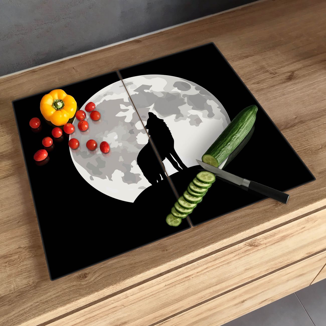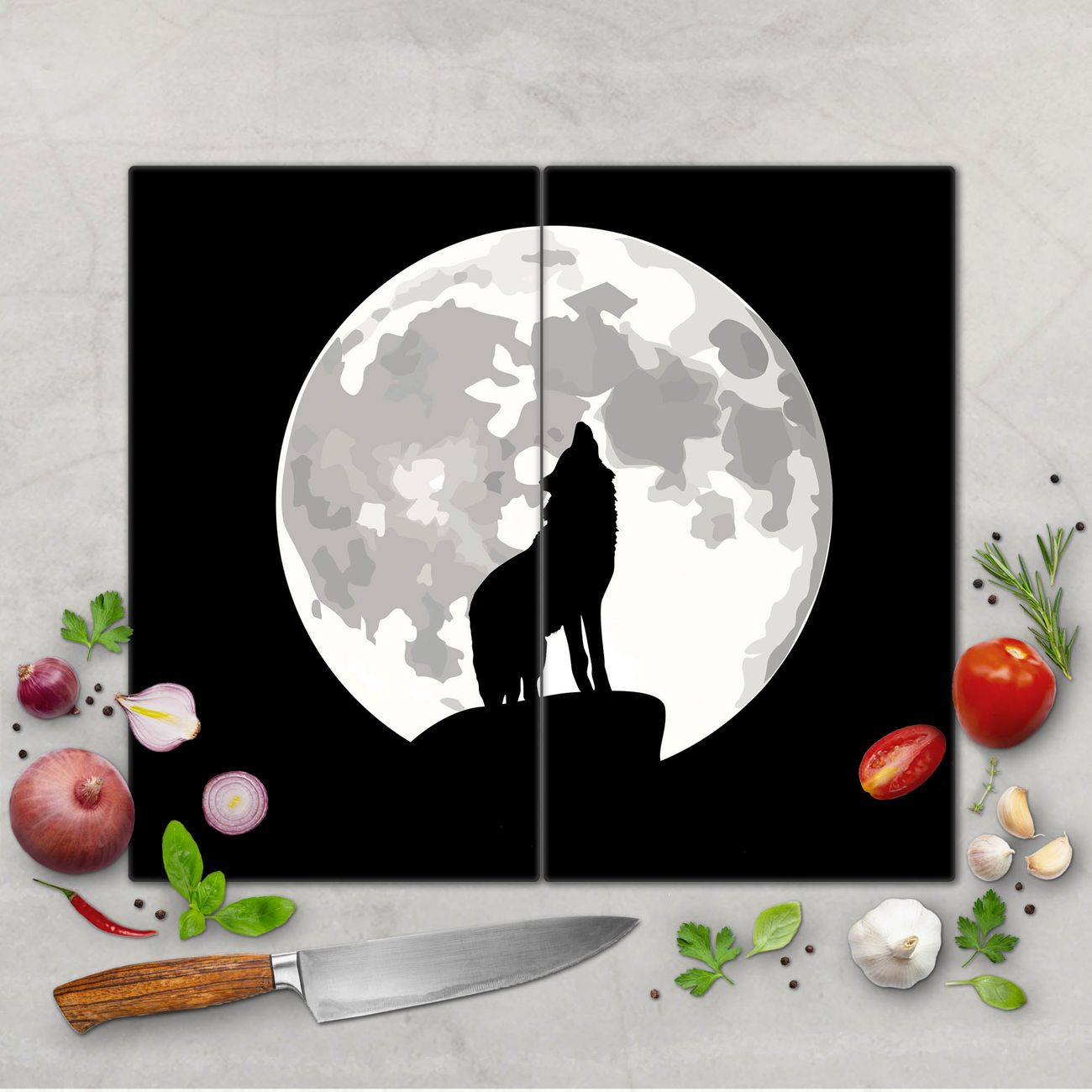 Schneidebrett 1 und 2 teilig Motiv Heulender Wolf SW