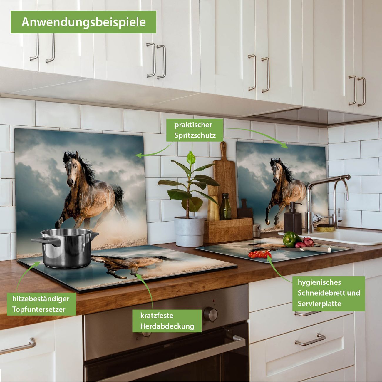 FUNKTION: Das banjado Schneidebrett mit Motiv Ibrahim ist groß und rutschfest und damit ideal für Ihre Küche. Besonders praktisch. Das Schneidebrett ist vielseitig einsetzbar: ob als Spritzschutz hinter dem Herd für Ihre Küche oder als Glas Schneidebrett als hygienische und geruchsneutrale Unterlage. Sie können ebenfalls heiße Töpfe und Pfannen bis 100°C auf der Herdplattenabdeckung abstellen. Sie erhalten ein Multitalent für Ihre Küche. QUALITÄT: Die Schneideplatte Glas besteht aus hochwertigem, gehärtetem und hitzebeständigem Glas. Wählen Sie aus einem unserer zahlreichen Motive das passende Design für Ihre Küche aus. DETAILS: Das Schneidebrett Glas groß ist in verschiedenen Größen verfügbar. Sie erhalten separate Gumminoppen damit Ihr großes Schneidebrett rutschfest in der Küche steht. VIELSEITIG: Das Schneidebrett modern ist ein Allrounder - als Schneideunterlage Küche direkt auf dem Herd oder separat und als Spritzschutz an der Wand aufgestellt - ein praktisches Küchenutensil. BANJADO: Auf Wunsch fertigen wir das Glas Schneide Brett auch als Sondergröße an. Mehrteilige Platten sind auch möglich. Kontaktieren Sie uns gern für eine Spezialanfertigung Ihrer Glasplatte Küche.
