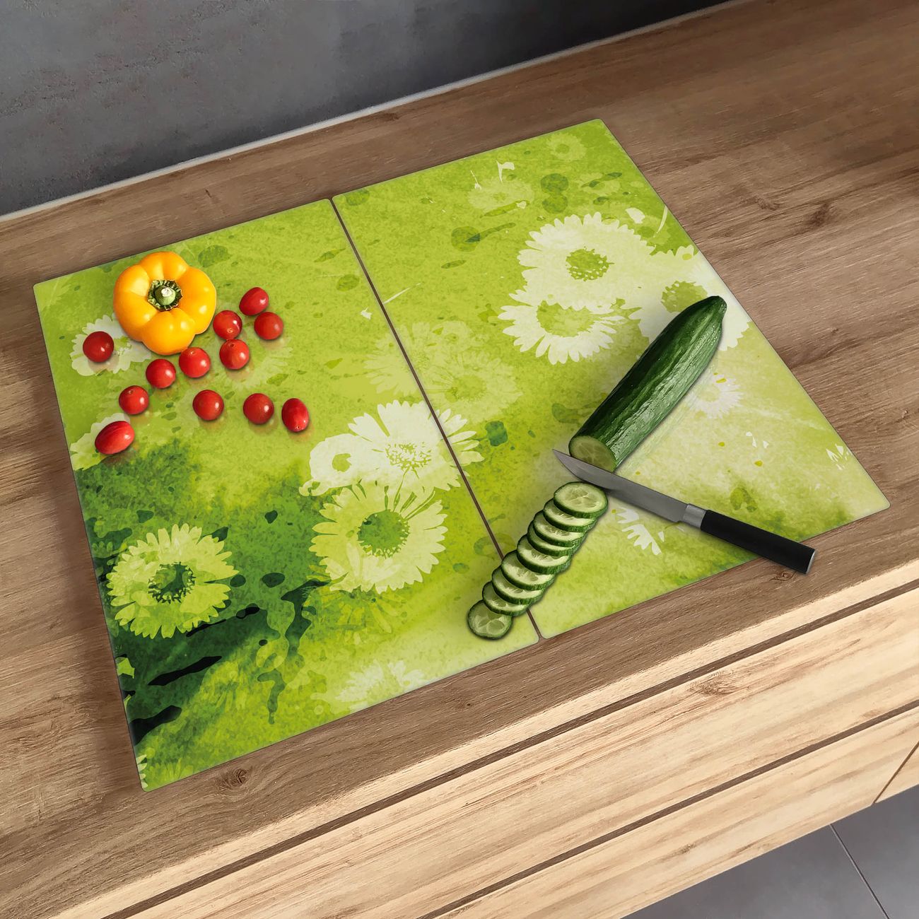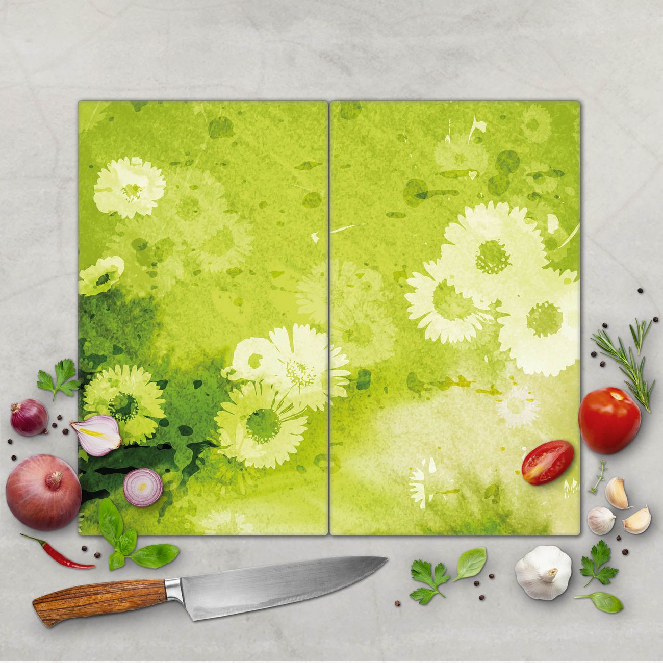 Schneidebrett 1 und 2 teilig Motiv Kamille Grün