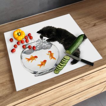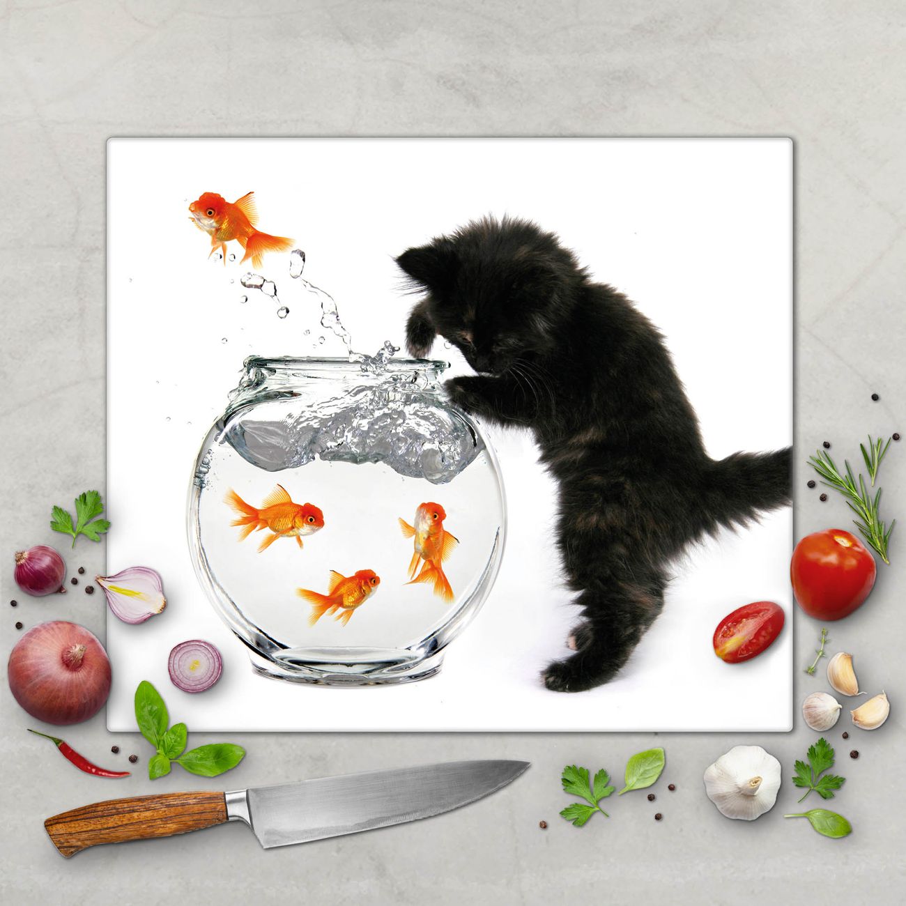 Schneidebrett 1 und 2 teilig Motiv Katze Und Fisch