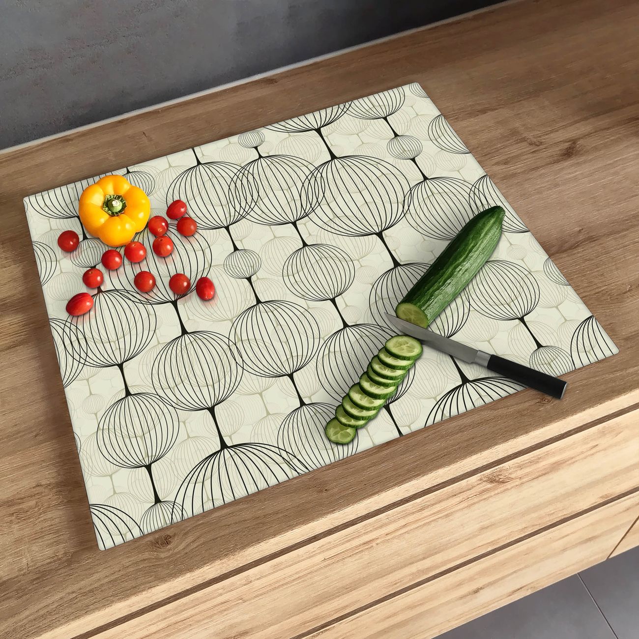 FUNKTION: Das banjado Schneidebrett mit Motiv Lampions ist groß und rutschfest und damit ideal für Ihre Küche. Besonders praktisch. Das Schneidebrett ist vielseitig einsetzbar: ob als Spritzschutz hinter dem Herd für Ihre Küche oder als Glas Schneidebrett als hygienische und geruchsneutrale Unterlage. Sie können ebenfalls heiße Töpfe und Pfannen bis 100°C auf der Herdplattenabdeckung abstellen. Sie erhalten ein Multitalent für Ihre Küche. QUALITÄT: Die Schneideplatte Glas besteht aus hochwertigem, gehärtetem und hitzebeständigem Glas. Wählen Sie aus einem unserer zahlreichen Motive das passende Design für Ihre Küche aus. DETAILS: Das Schneidebrett Glas groß ist in verschiedenen Größen verfügbar. Sie erhalten separate Gumminoppen damit Ihr großes Schneidebrett rutschfest in der Küche steht. VIELSEITIG: Das Schneidebrett modern ist ein Allrounder - als Schneideunterlage Küche direkt auf dem Herd oder separat und als Spritzschutz an der Wand aufgestellt - ein praktisches Küchenutensil. BANJADO: Auf Wunsch fertigen wir das Glas Schneide Brett auch als Sondergröße an. Mehrteilige Platten sind auch möglich. Kontaktieren Sie uns gern für eine Spezialanfertigung Ihrer Glasplatte Küche.