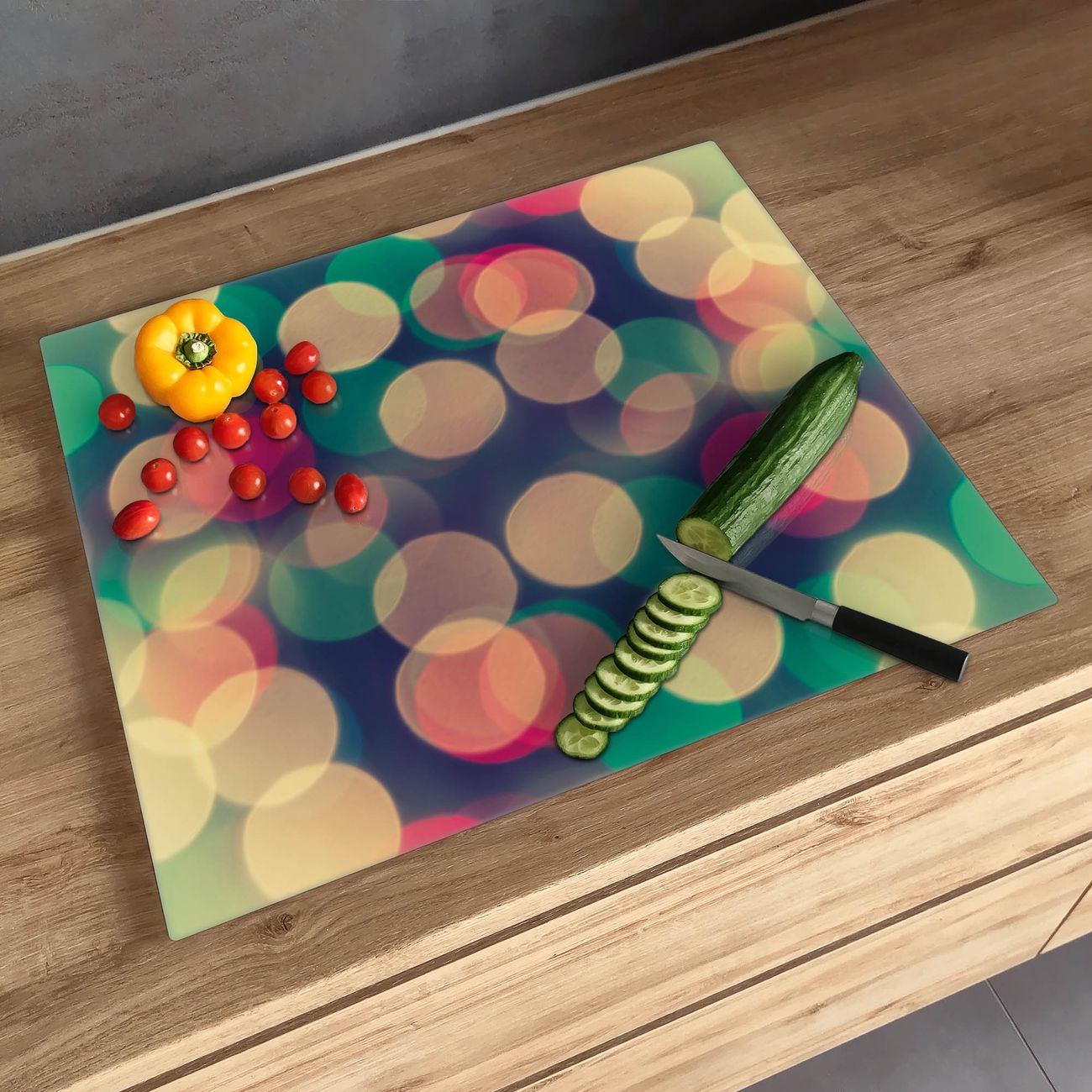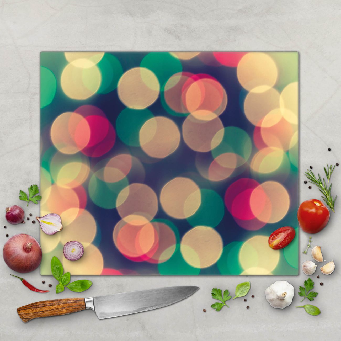 Schneidebrett 1 und 2 teilig Motiv Lichtpunkte Weiß Grün Rot