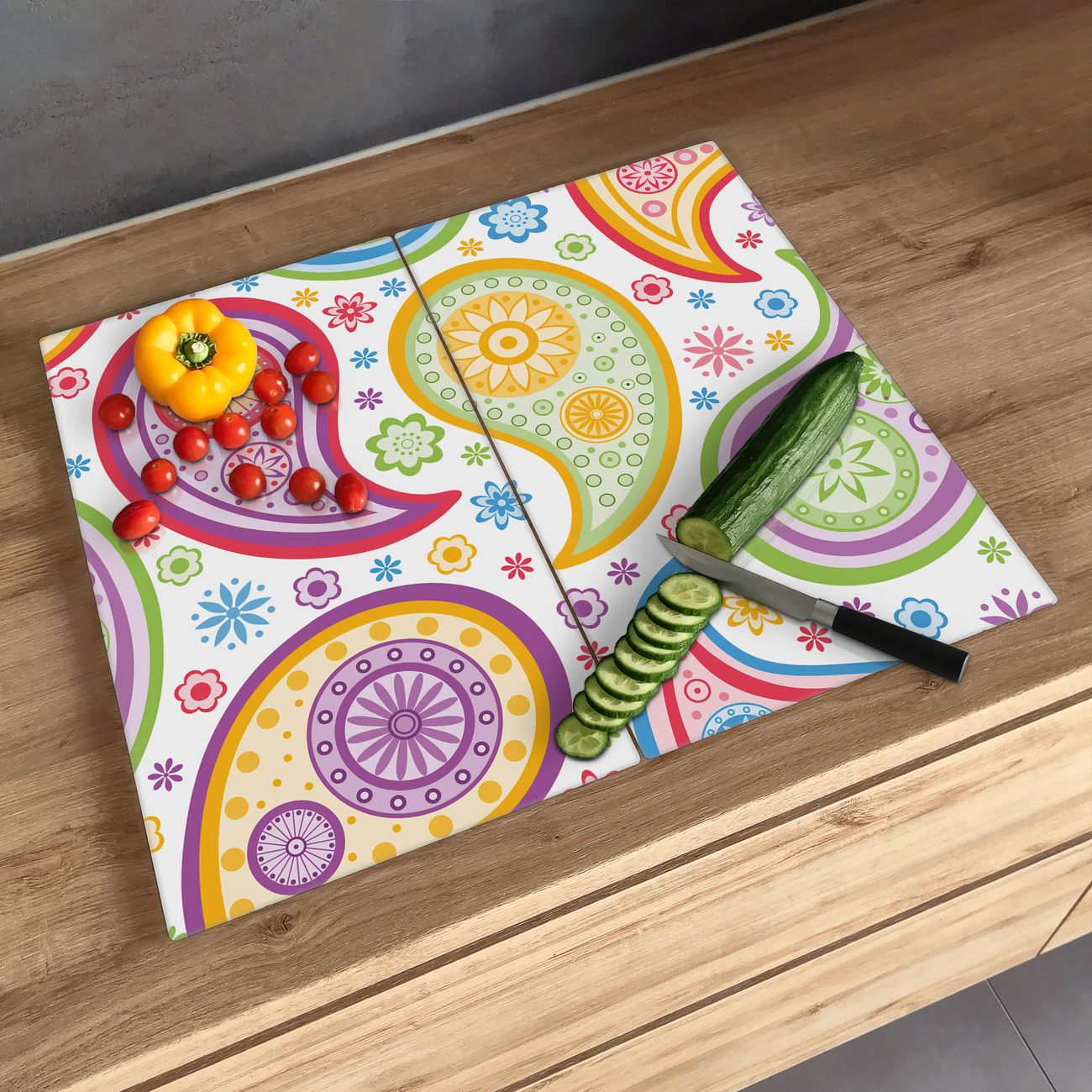 Schneidebrett 1 und 2 teilig Motiv Paisley bunt