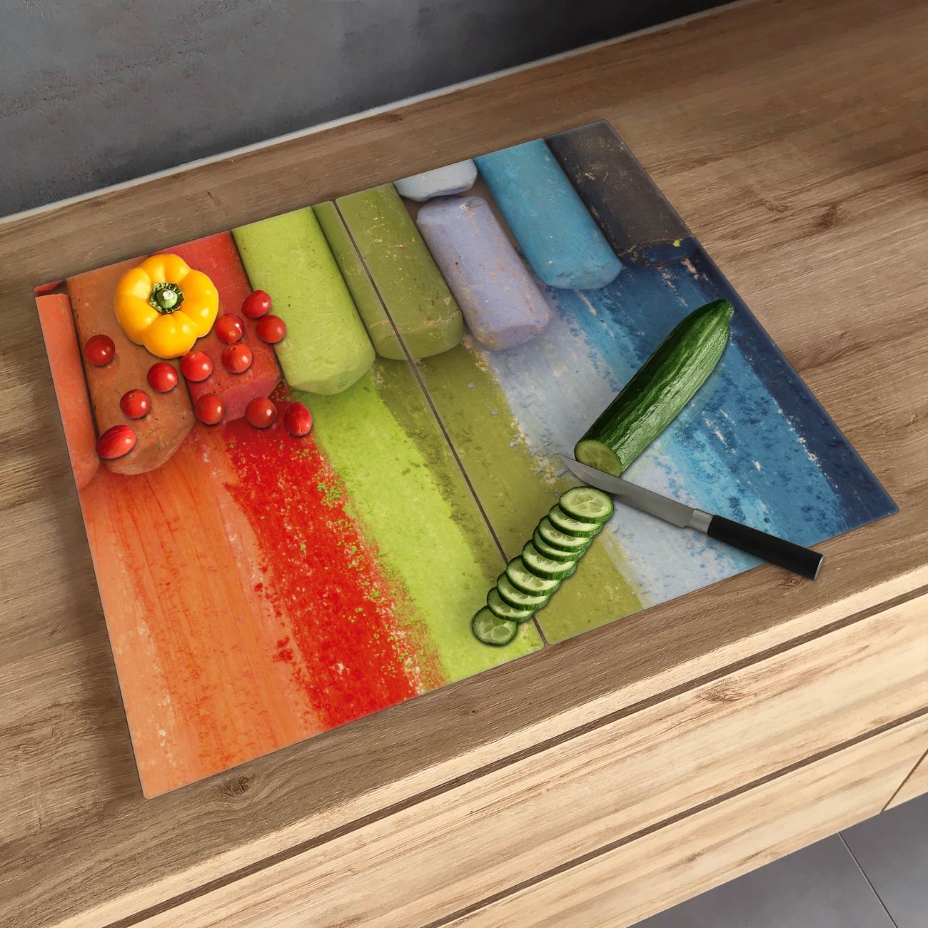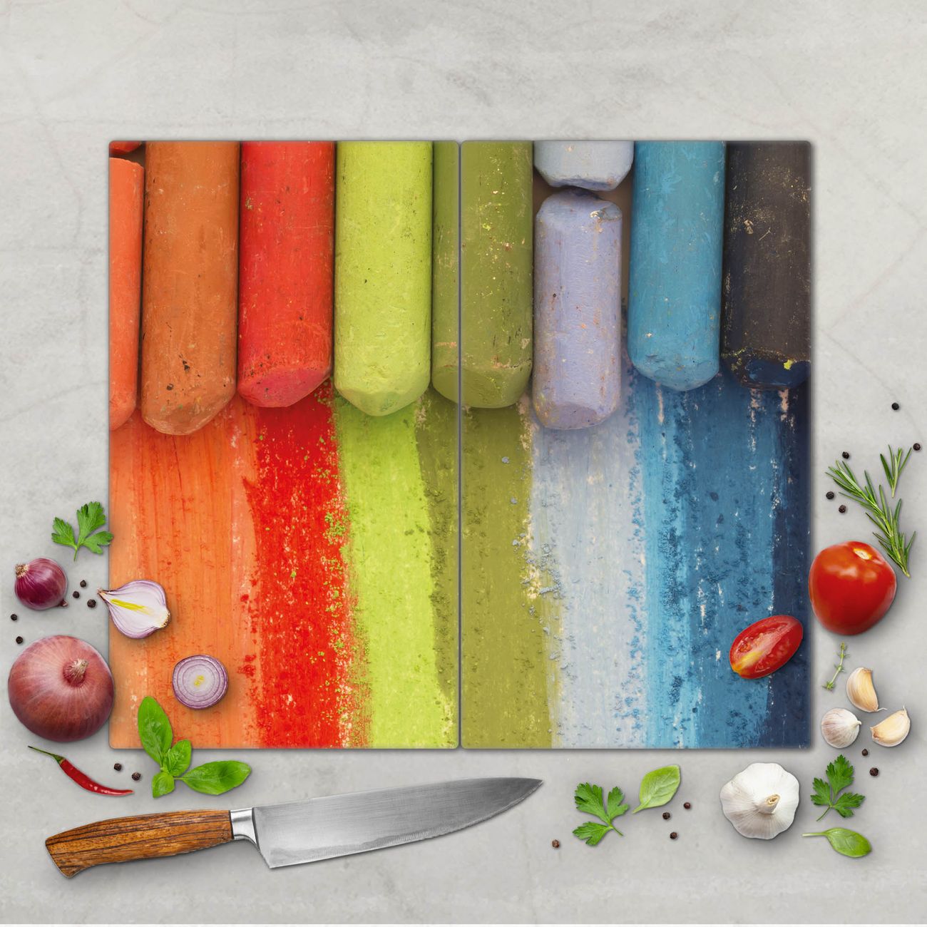 Schneidebrett 1 und 2 teilig Motiv Regenbogenkreide