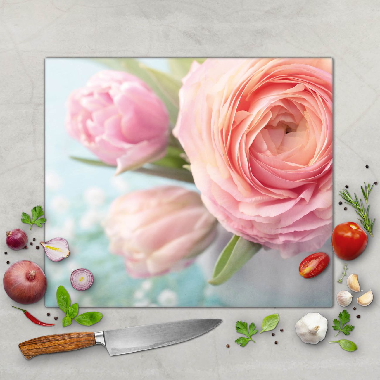 Schneidebrett 1 und 2 teilig Motiv Rosa Tulpe