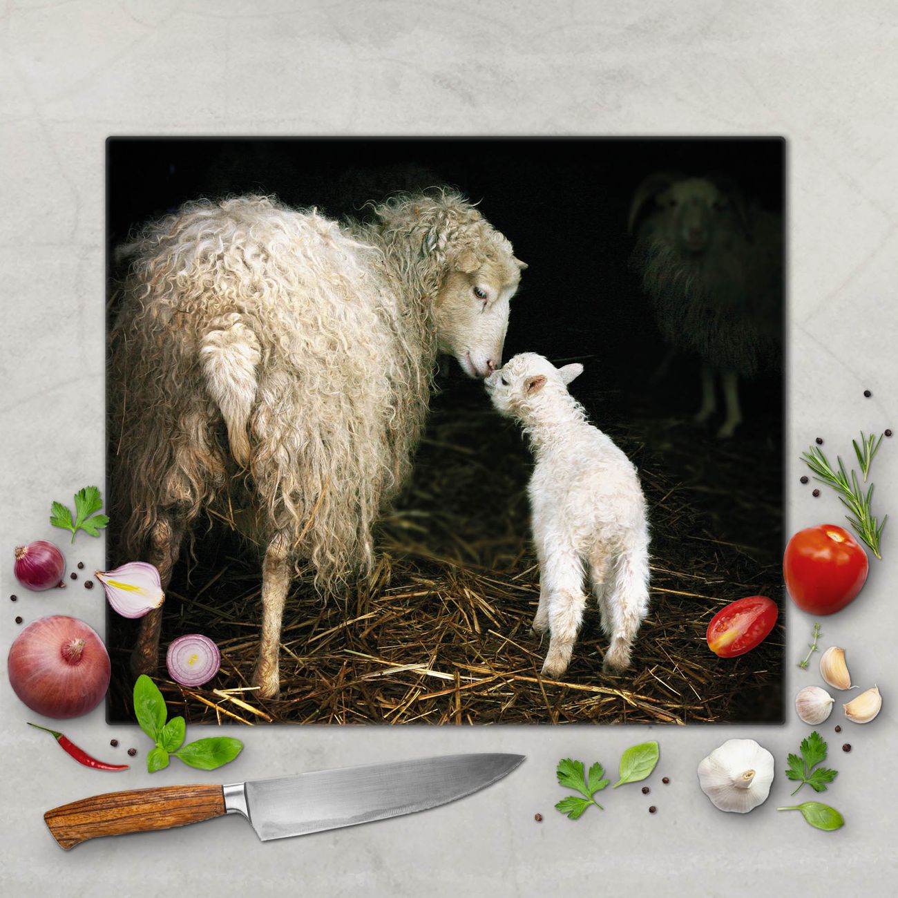 Schneidebrett 1 und 2 teilig Motiv Schaf Und Lamm