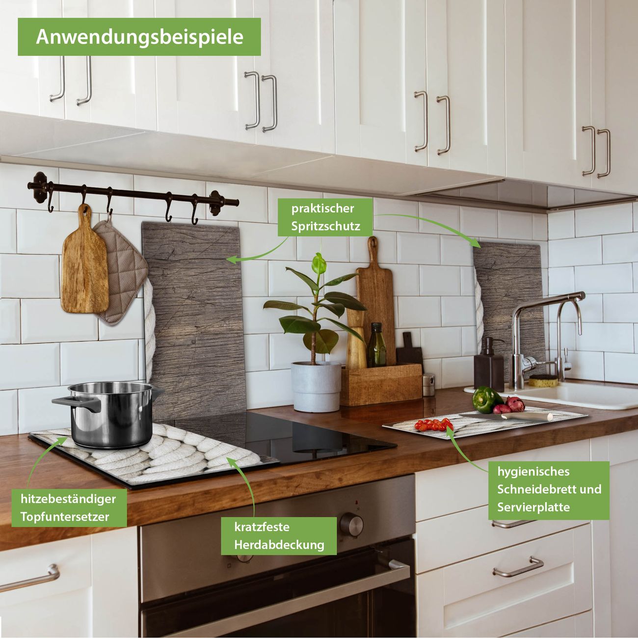FUNKTION: Das banjado Schneidebrett mit Motiv Seil ist groß und rutschfest und damit ideal für Ihre Küche. Besonders praktisch. Das Schneidebrett ist vielseitig einsetzbar: ob als Spritzschutz hinter dem Herd für Ihre Küche oder als Glas Schneidebrett als hygienische und geruchsneutrale Unterlage. Sie können ebenfalls heiße Töpfe und Pfannen bis 100°C auf der Herdplattenabdeckung abstellen. Sie erhalten ein Multitalent für Ihre Küche. QUALITÄT: Die Schneideplatte Glas besteht aus hochwertigem, gehärtetem und hitzebeständigem Glas. Wählen Sie aus einem unserer zahlreichen Motive das passende Design für Ihre Küche aus. DETAILS: Das Schneidebrett Glas groß ist in verschiedenen Größen verfügbar. Sie erhalten separate Gumminoppen damit Ihr großes Schneidebrett rutschfest in der Küche steht. VIELSEITIG: Das Schneidebrett modern ist ein Allrounder - als Schneideunterlage Küche direkt auf dem Herd oder separat und als Spritzschutz an der Wand aufgestellt - ein praktisches Küchenutensil. BANJADO: Auf Wunsch fertigen wir das Glas Schneide Brett auch als Sondergröße an. Mehrteilige Platten sind auch möglich. Kontaktieren Sie uns gern für eine Spezialanfertigung Ihrer Glasplatte Küche.
