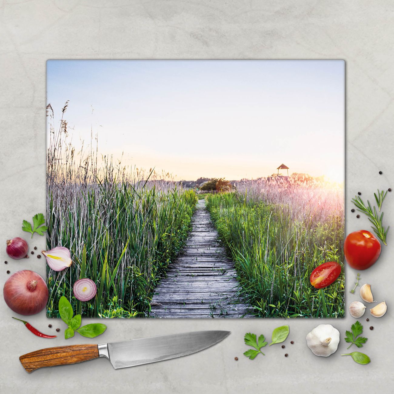 Schneidebrett 1 und 2 teilig Motiv Steg Durchs Schilf